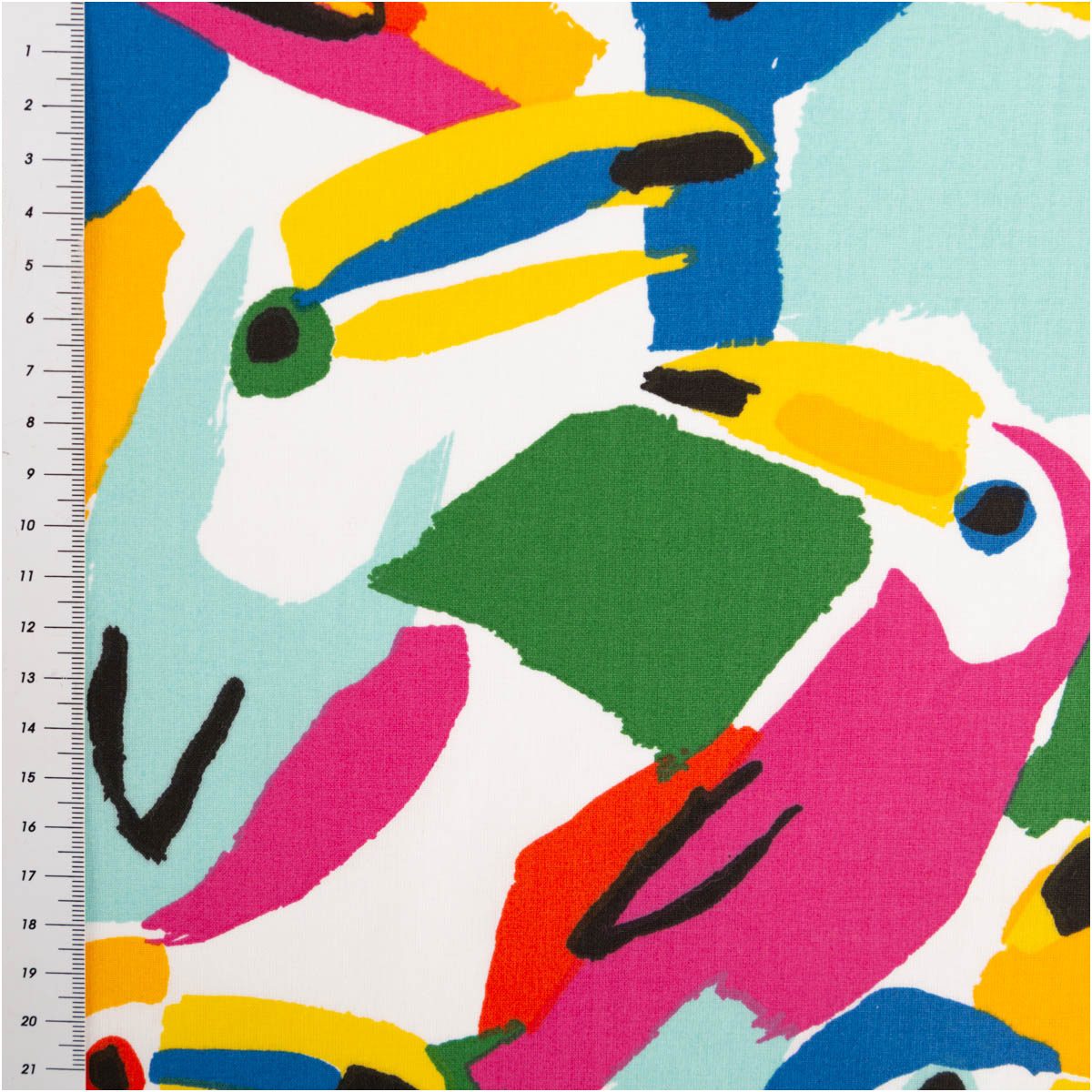 Der Stoff eignet sich auch für Kleider, Tuniken oder leichte Röcke. Die luftige Qualität sorgt für angenehmen Tragekomfort, während das Papageien-Dessin echte Hingucker schafft.