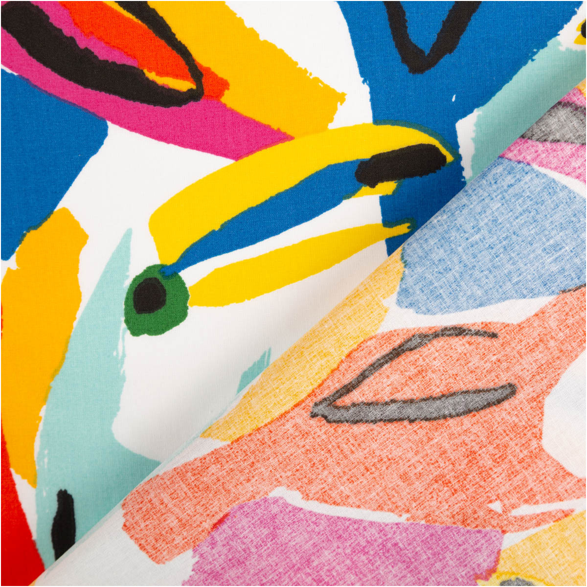 Leichter Dekostoff mit farbenfrohem Papageien-Dessin