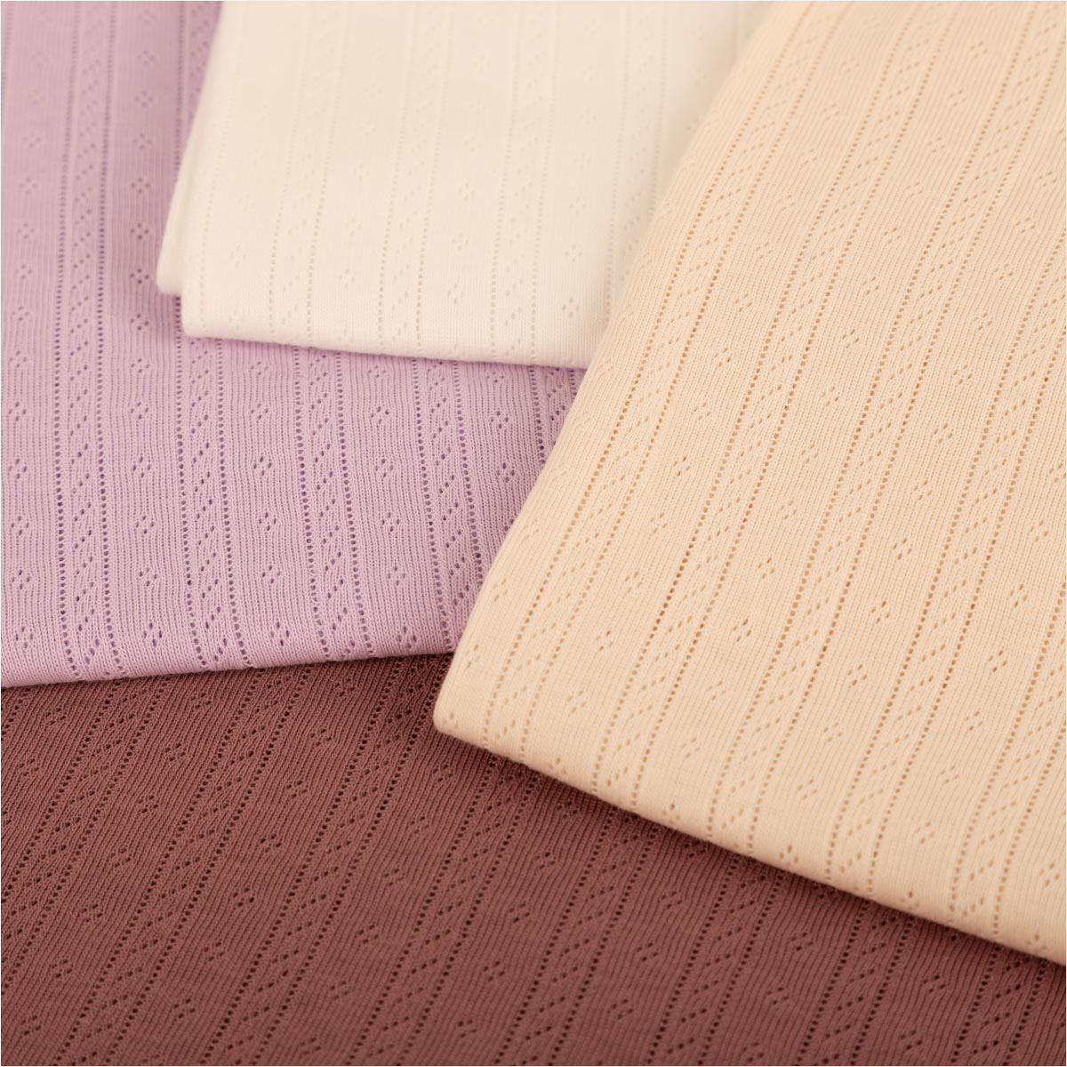Suchst du nach einem leichten, hautfreundlichen Strickstoff, der sich perfekt für gemütliche, atmungsaktive Kleidung eignet? Dann ist dieser Ajour- bzw. Pointelle-Strickstoff aus 100 % Baumwolle genau richtig.