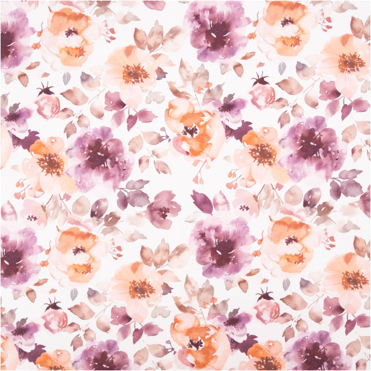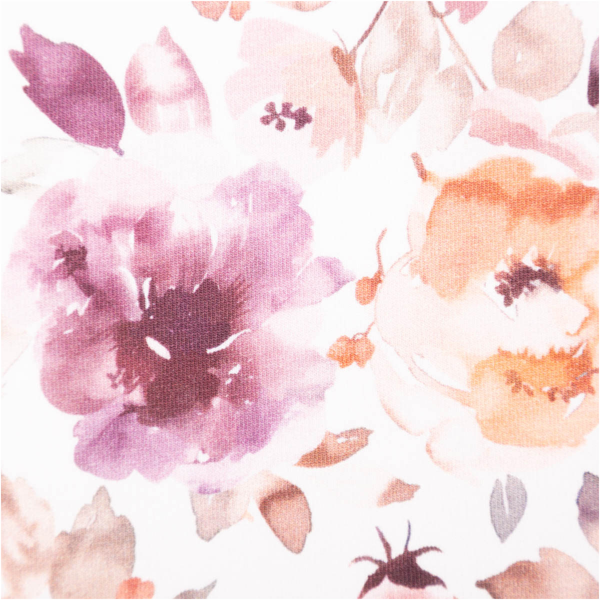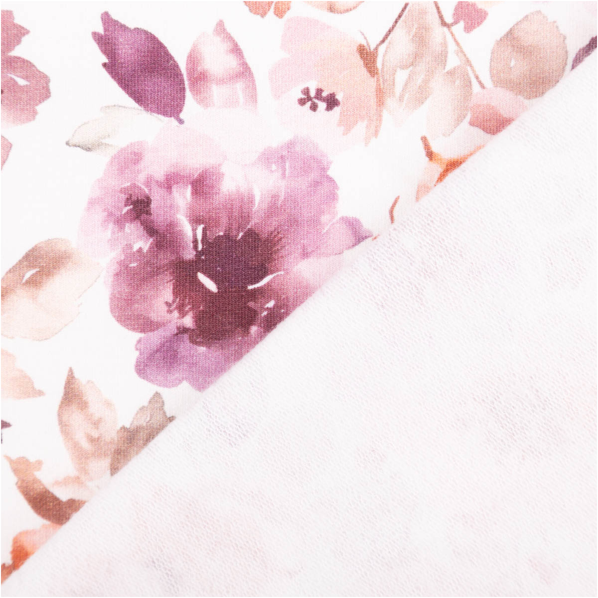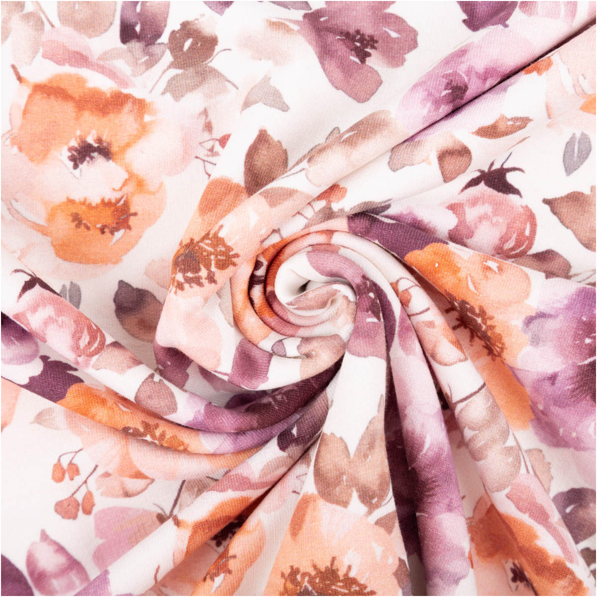 Kuschelig weicher French Terry mit gebürsteter Innenseite – elastisch, atmungsaktiv und formstabil. Der hochwertige Blumen-Digitaldruck in Rosatönen macht deine Cozy-Looks und Home-Projekte zum Hingucker.