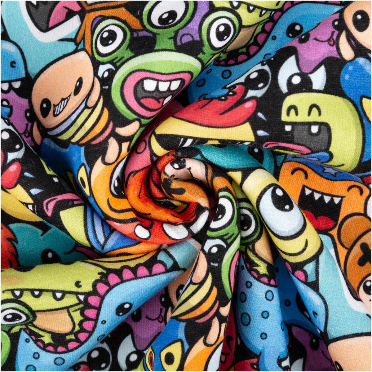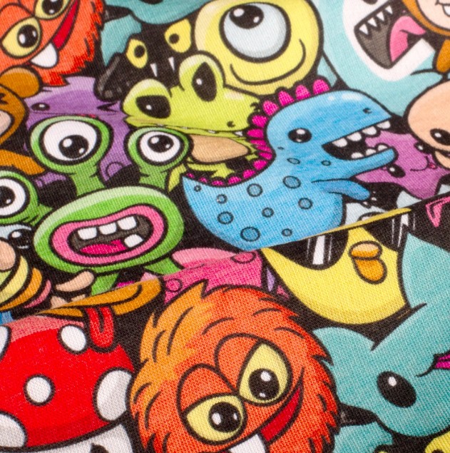 Bunter Monster-Print: hochwertiger Digitaldruck mit klaren, brillanten Farben