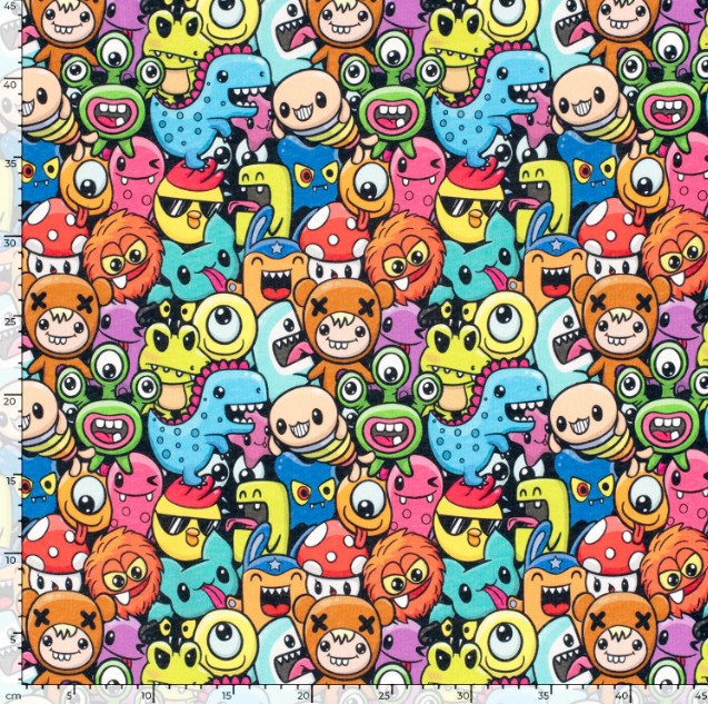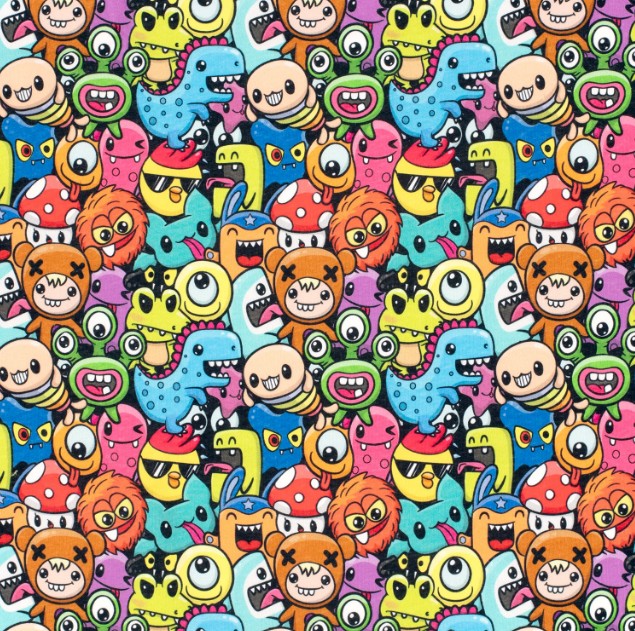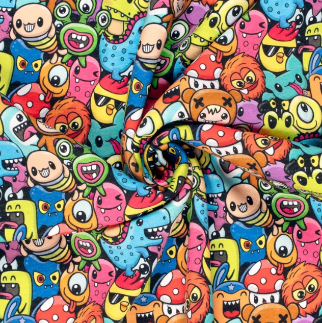 Sweatstoff Baumwolle Monster Digitaldruck bunt 155cm breit