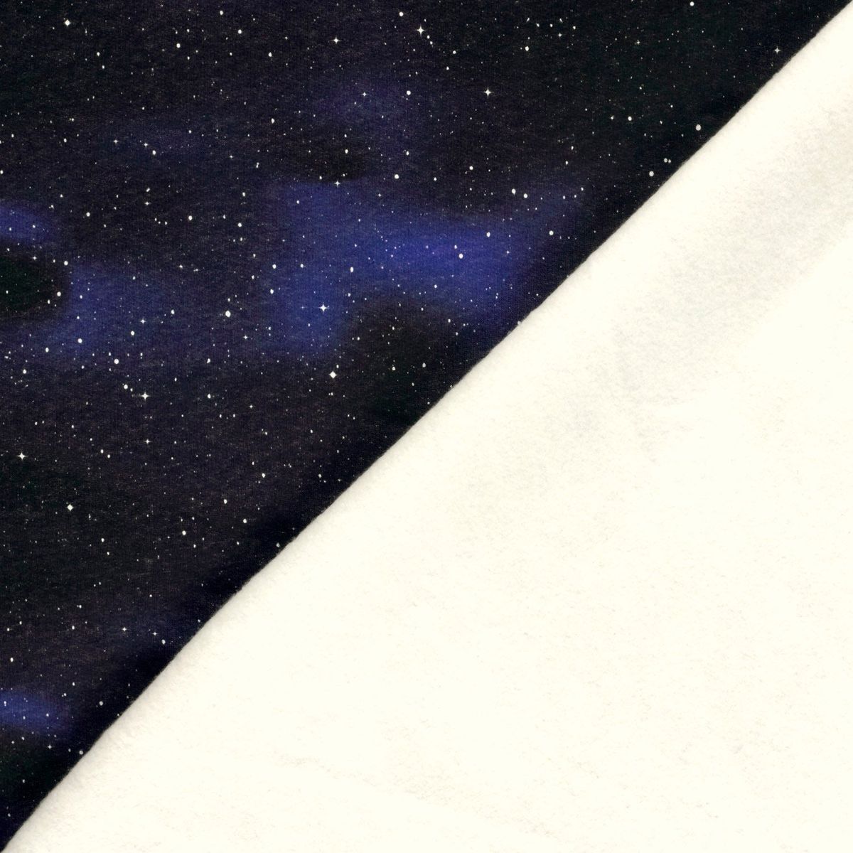 Sweatstoff Baumwolle Weltall – Digitaldruck Dunkelblau, 155 cm Breite, weich & wärmend