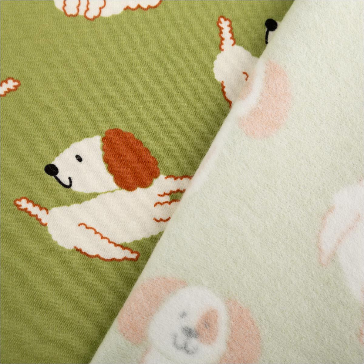 Sweatstoff Soft Sweat Baumwolle Hunde grün ecru – 1,48 m breit