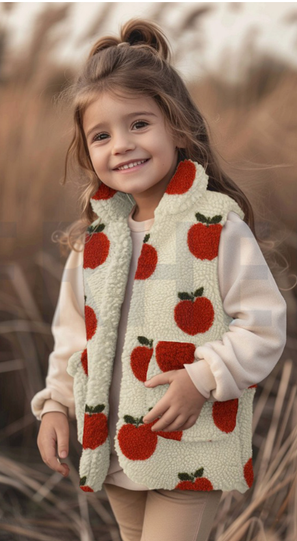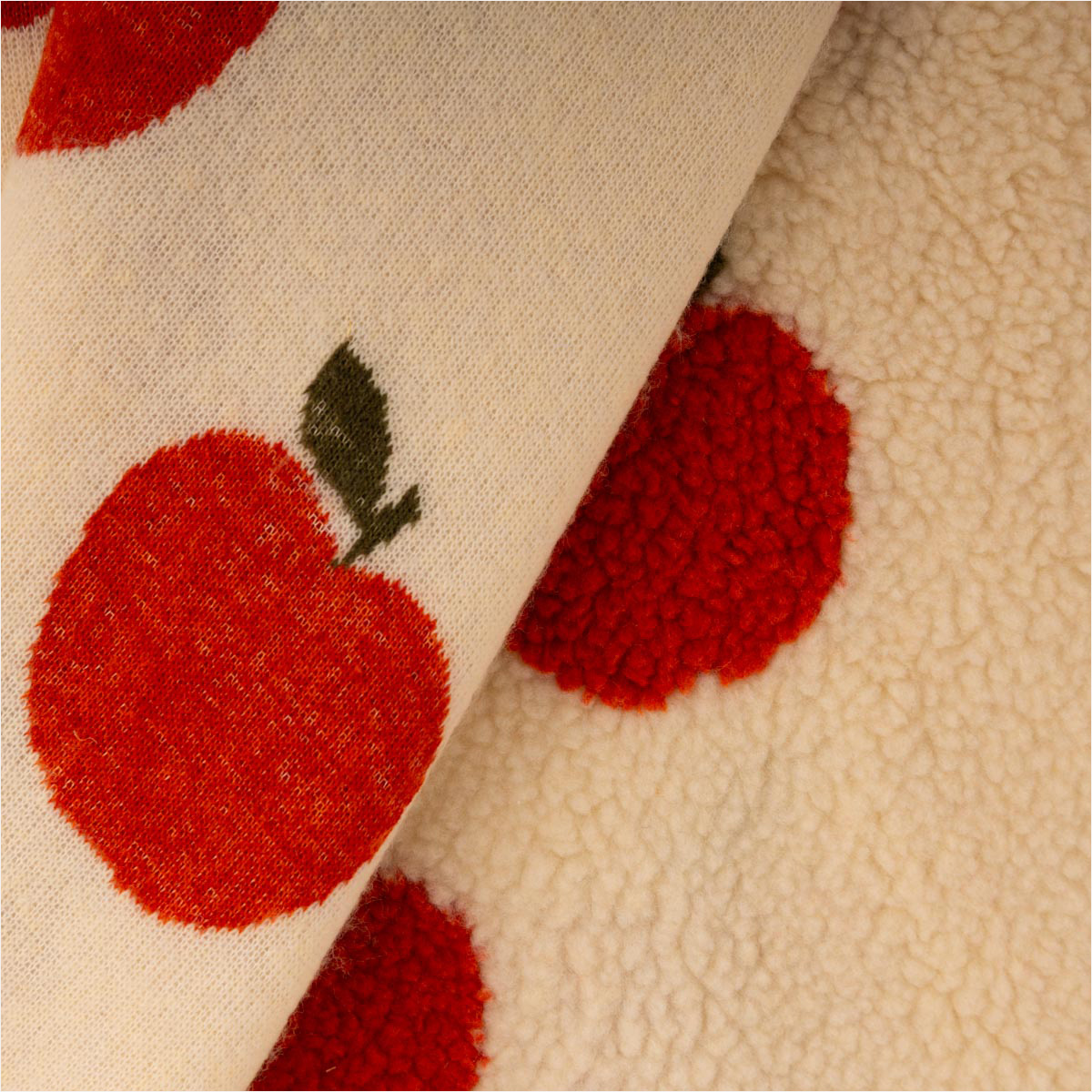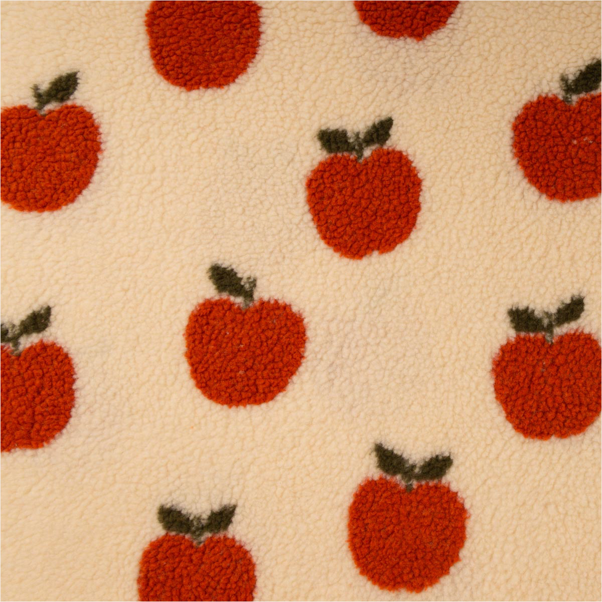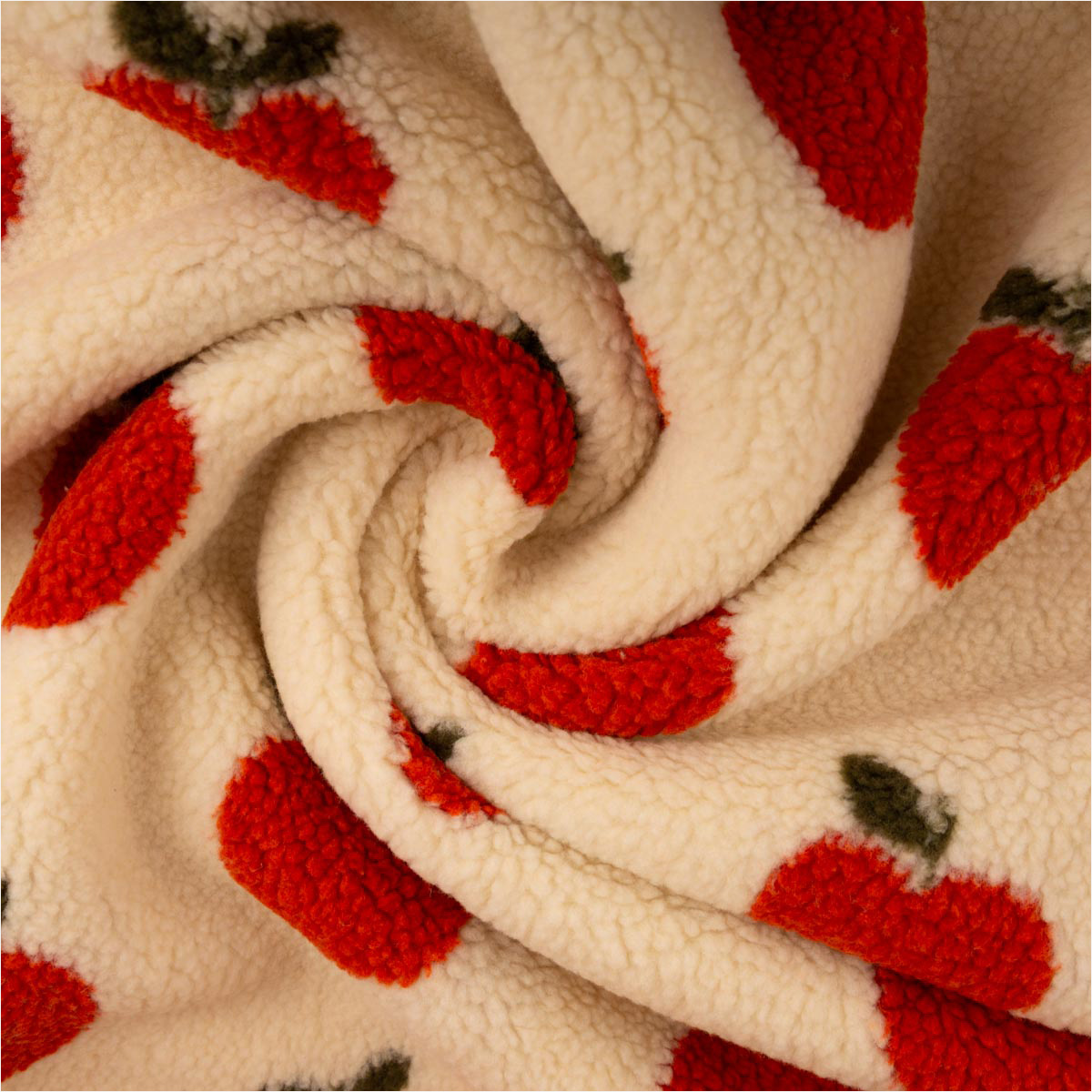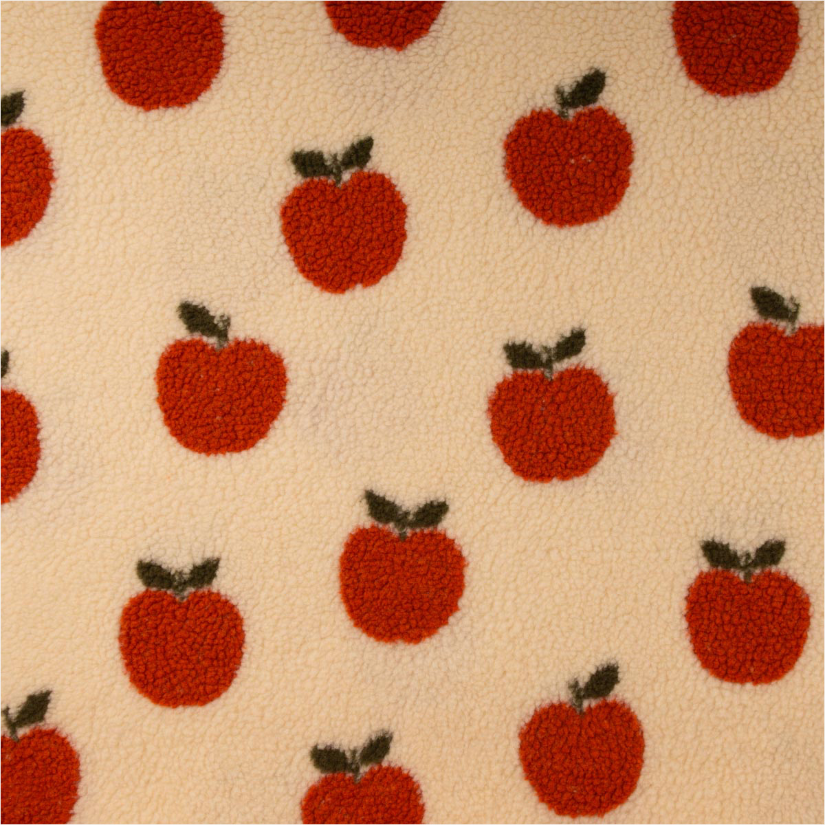 Flauschiger Bouclé-Teddystoff mit Apfeldesign – perfekt für Kleidung & Deko