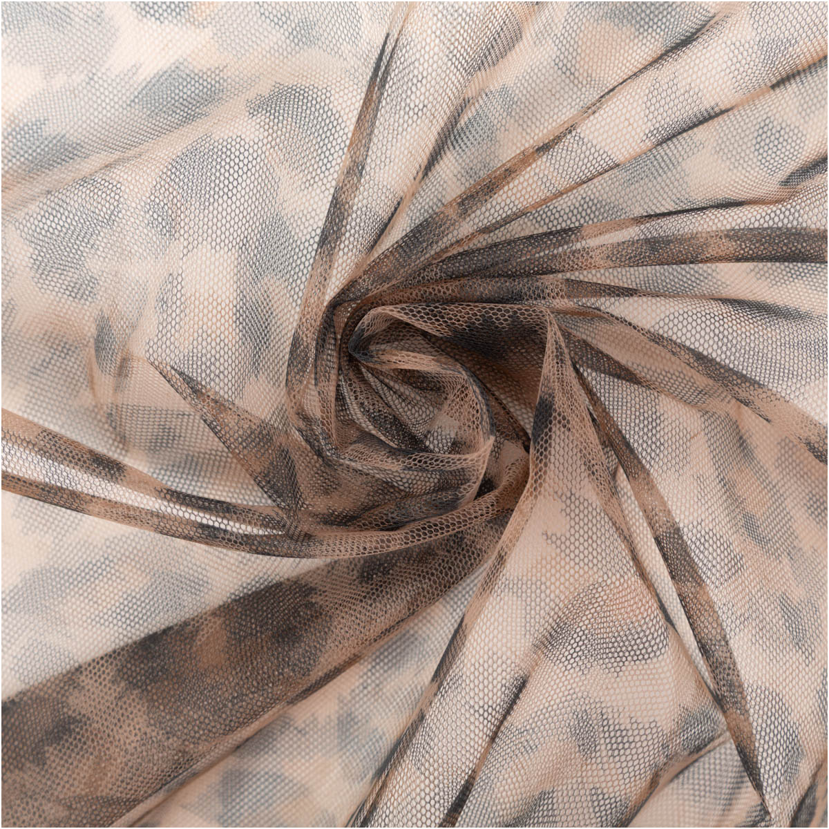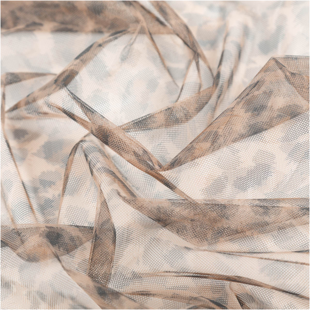 Leichter, transparenter Tüll mit modernem Leo-Print in warmen Brauntönen