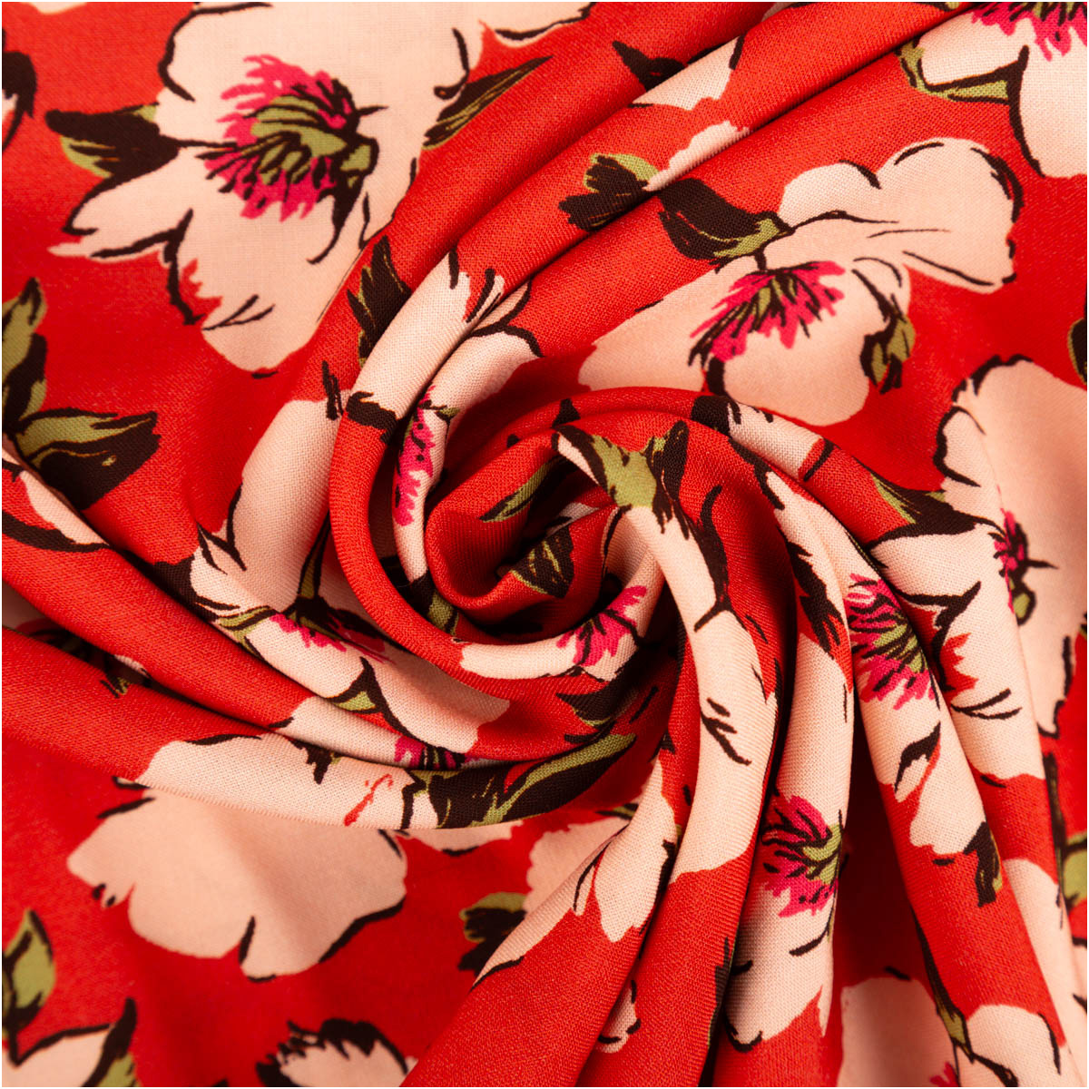 Dieser hochwertige Viskose Stoff für Bekleidung überzeugt durch ein ausdrucksstarkes florales Muster in warmen Rot- und Rosatönen. Das exklusive französische Dessin verleiht dem Stoff eine elegante, feminine Ausstrahlung und macht ihn zur idealen Wahl für stilvolle, selbstgenähte Kleidung mit besonderem Charakter.