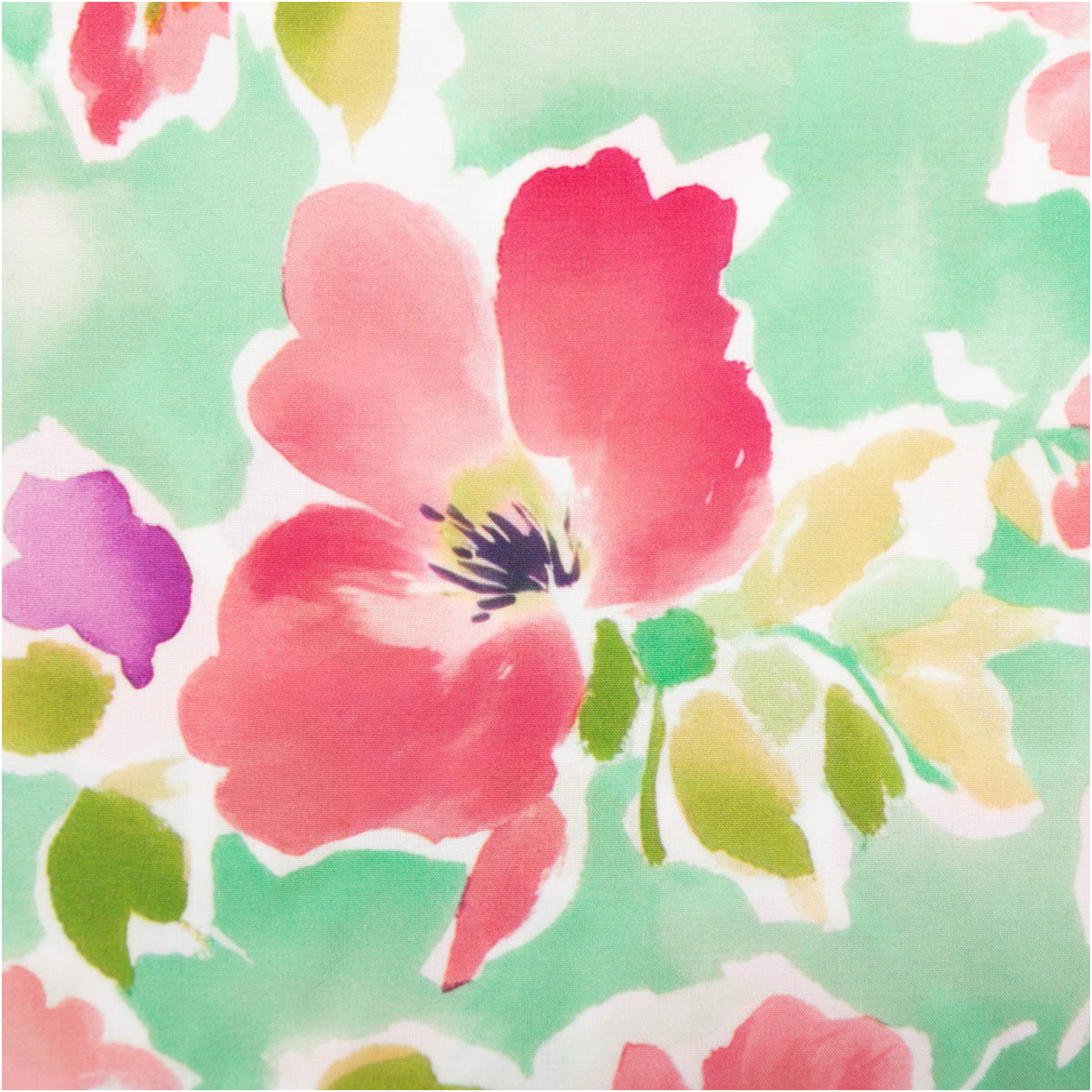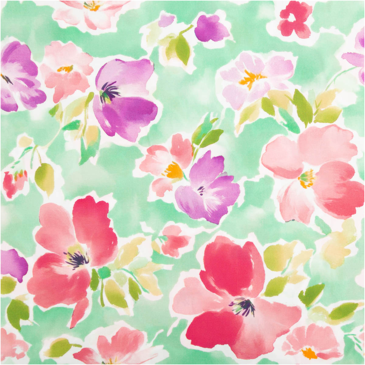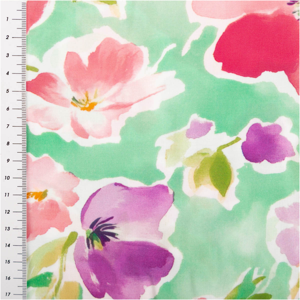 Viskose Stoff Blüten als Meterware in Hellgrün, Lila und Rot