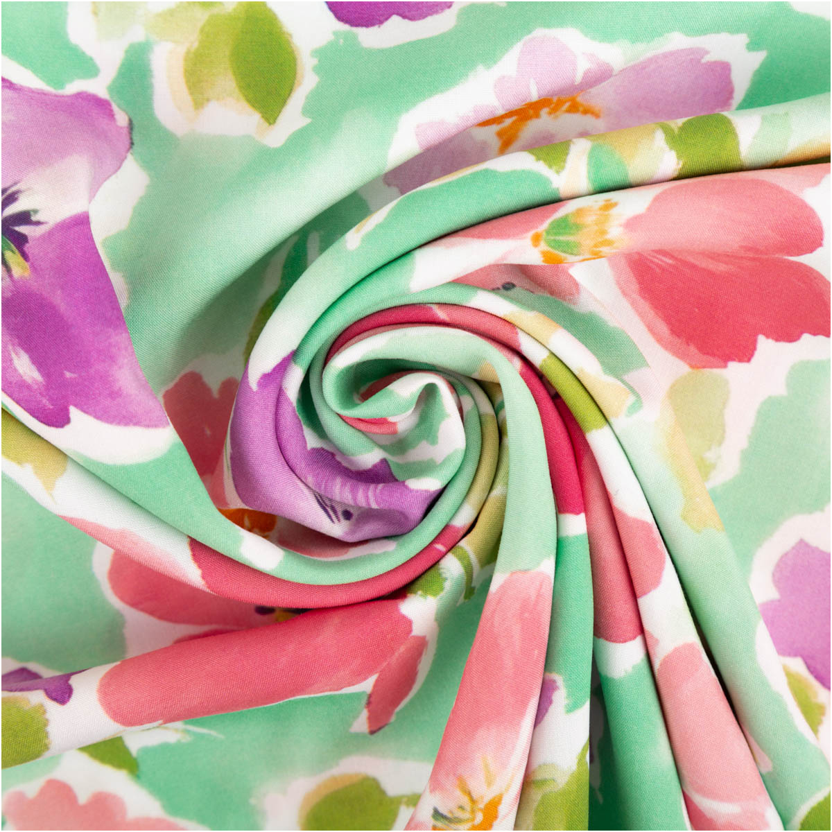 Viskose Stoff Lenzing EcoVero Blüten hellgrün lila rot 140 cm Breite