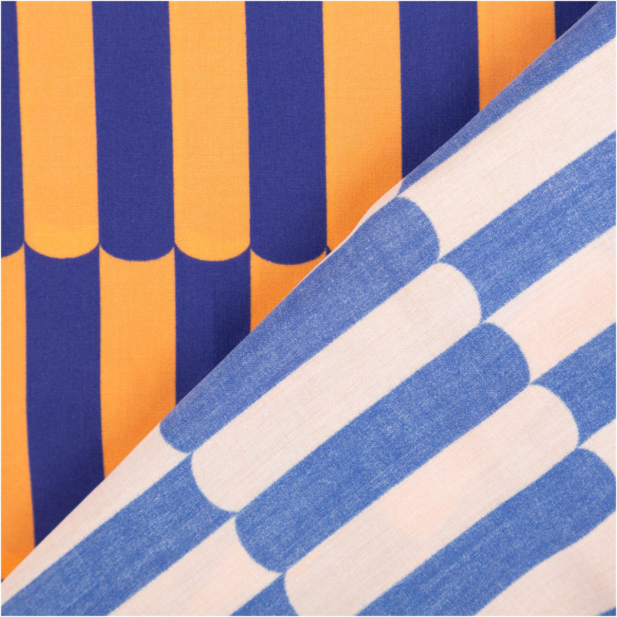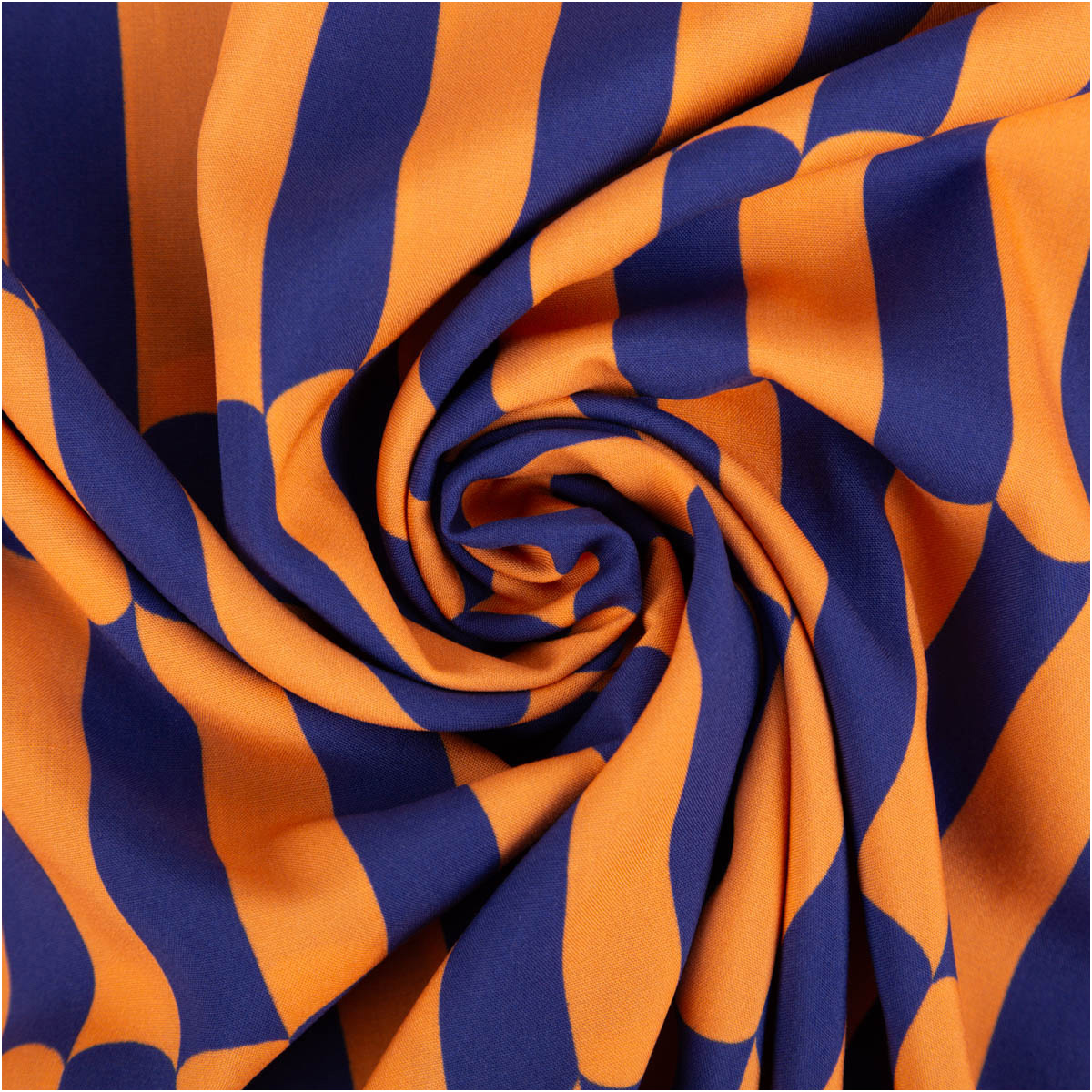 Dieser hochwertige Viskose Stoff aus Lenzing EcoVero™ Fasern verbindet modernes Retro-Design mit einem besonders umweltschonenden Herstellungsverfahren. Der fließende Fall, die seidig weiche Oberfläche und der ausdrucksstarke Print in Kobaltblau und Orange machen ihn zur perfekten Wahl für luftige Kleidung, stilvolle Accessoires und nachhaltige Nähprojekte.