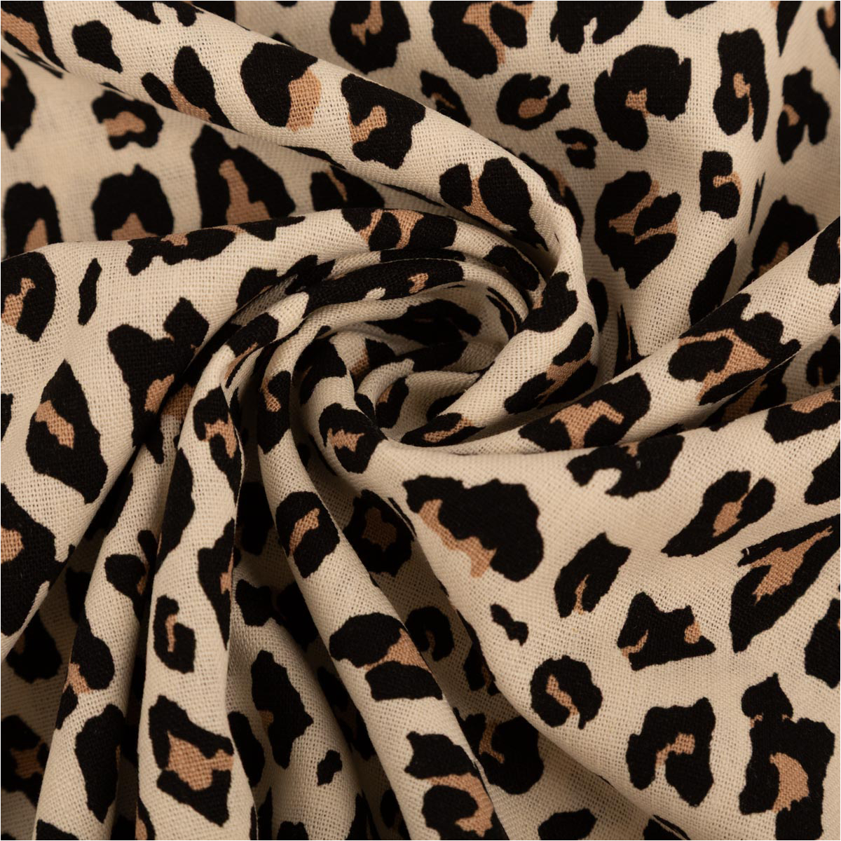 Viskose Stoff mit 30% Leinen Leo ecru schwarz braun 1,34cm Breite