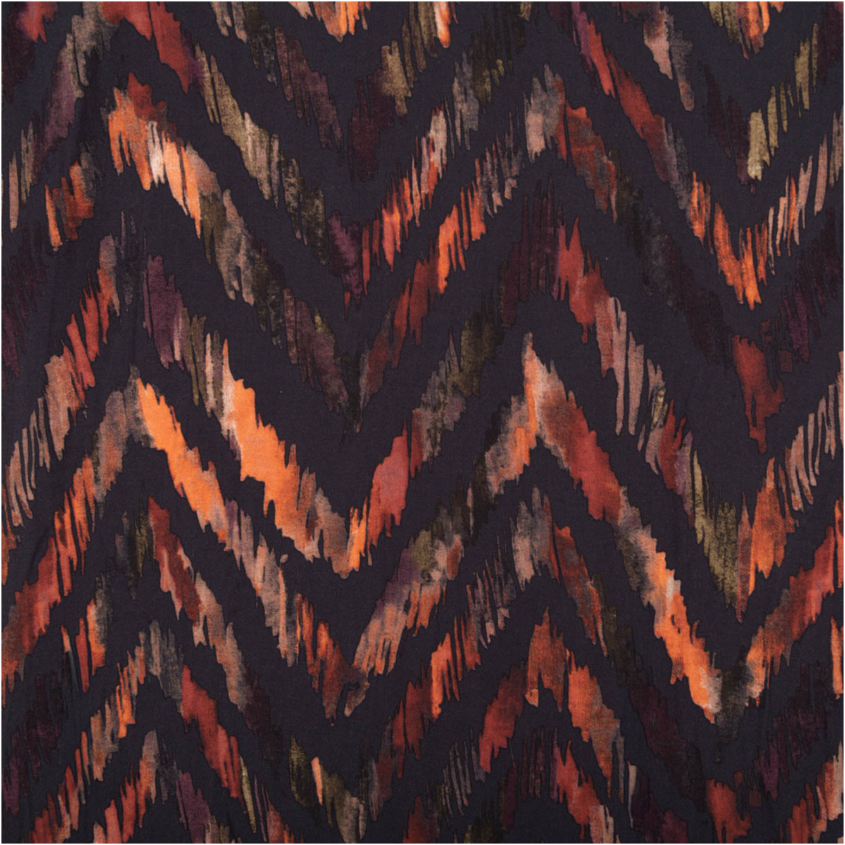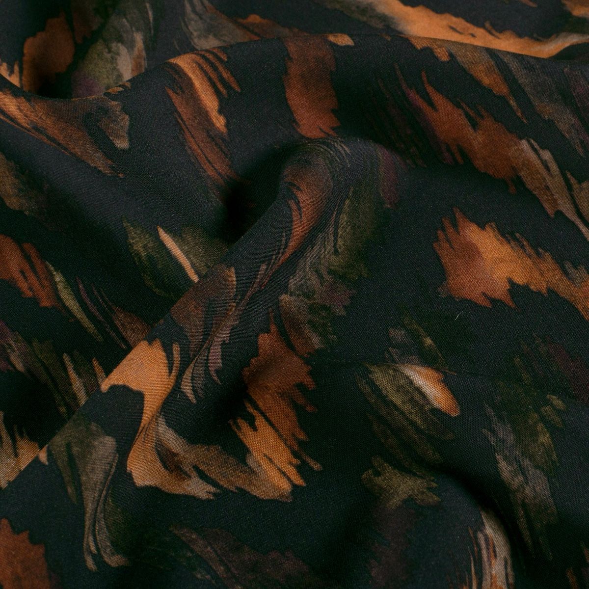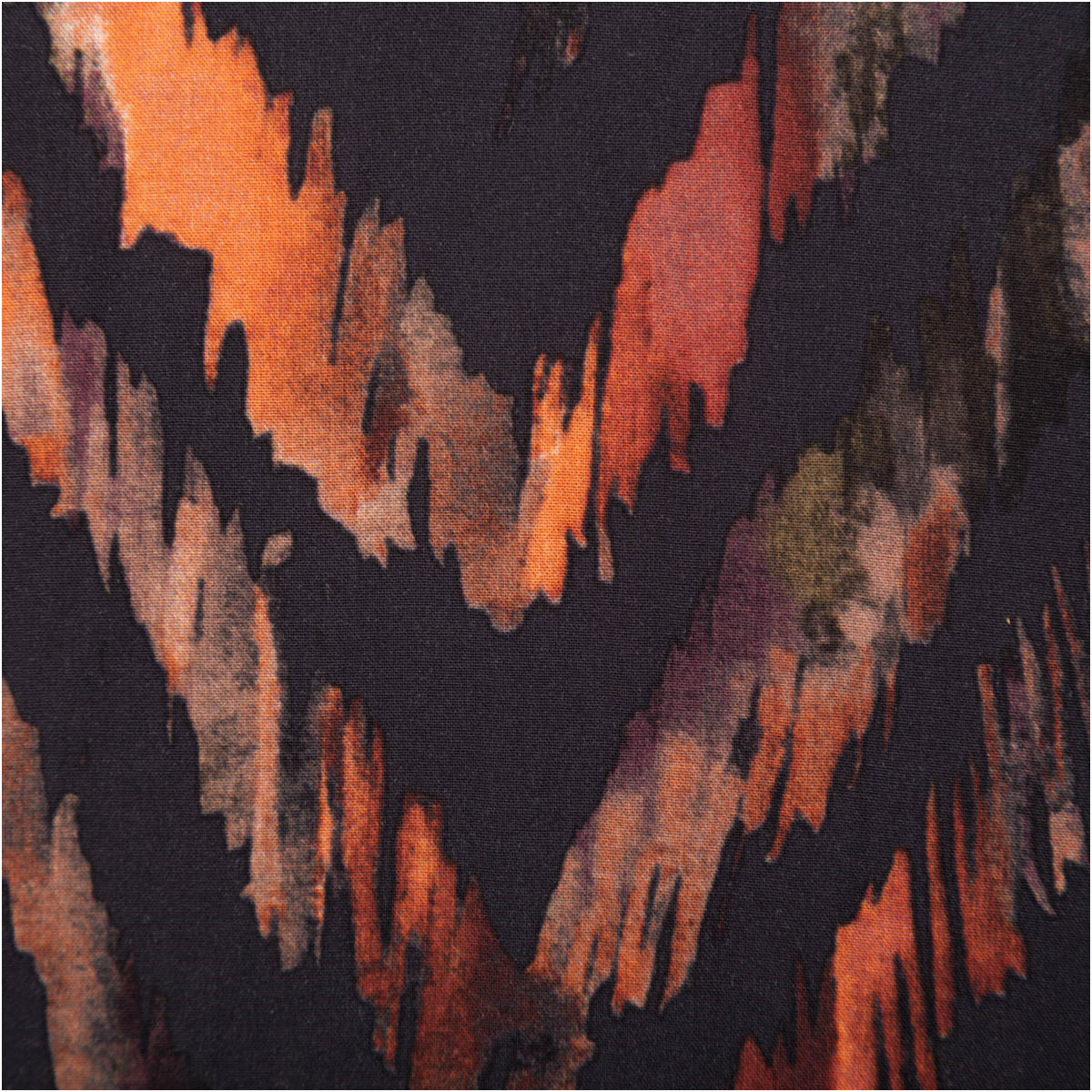 Leichte, glatte Viskose-Popeline mit abstraktem Zickzack-Dessin in warmen Naturtönen auf Dunkelgrau. Mit 145 cm Breite und ca. 110 g/m² ist er perfekt für luftige Sommer-Looks – kühl auf der Haut, weich fallend und angenehm zu tragen.