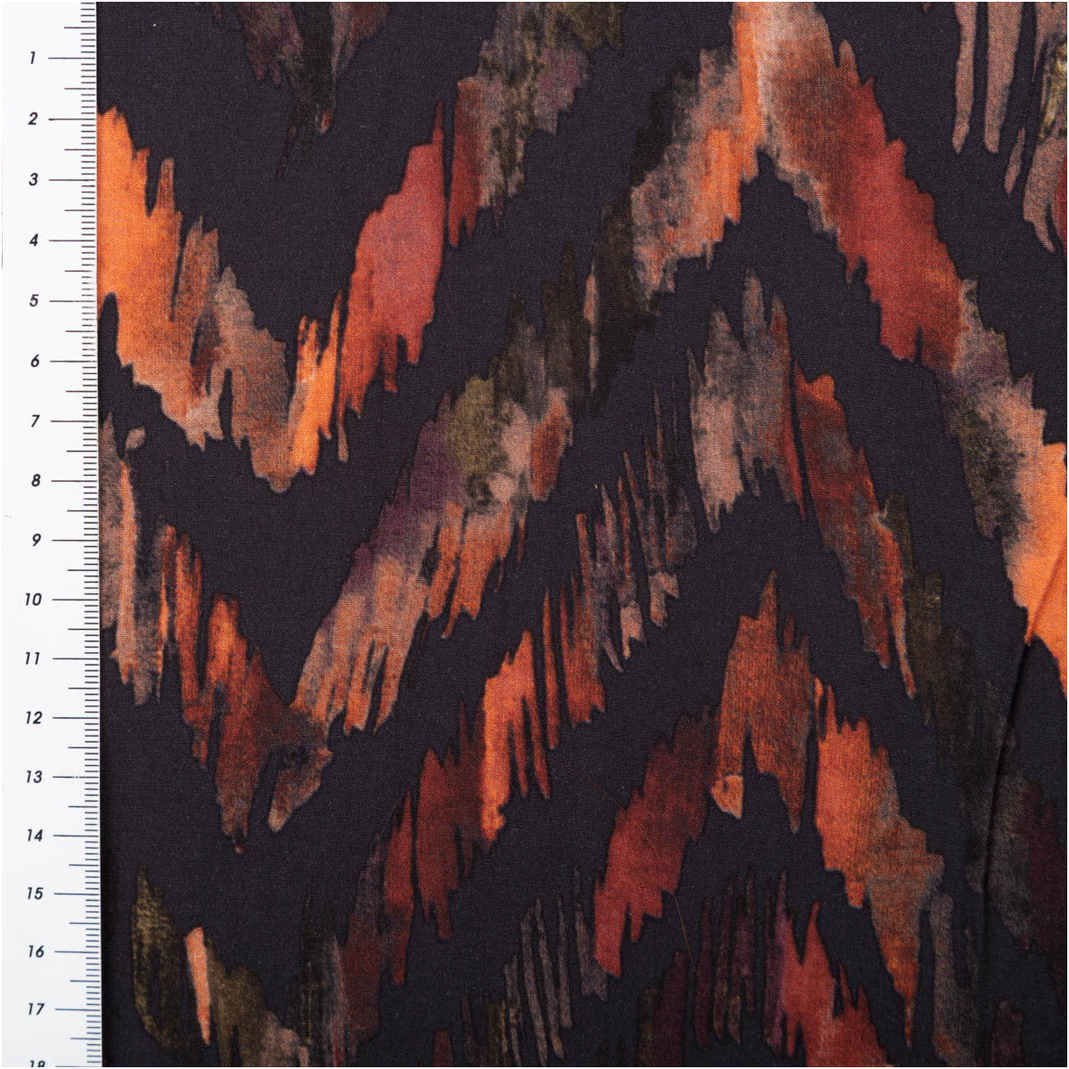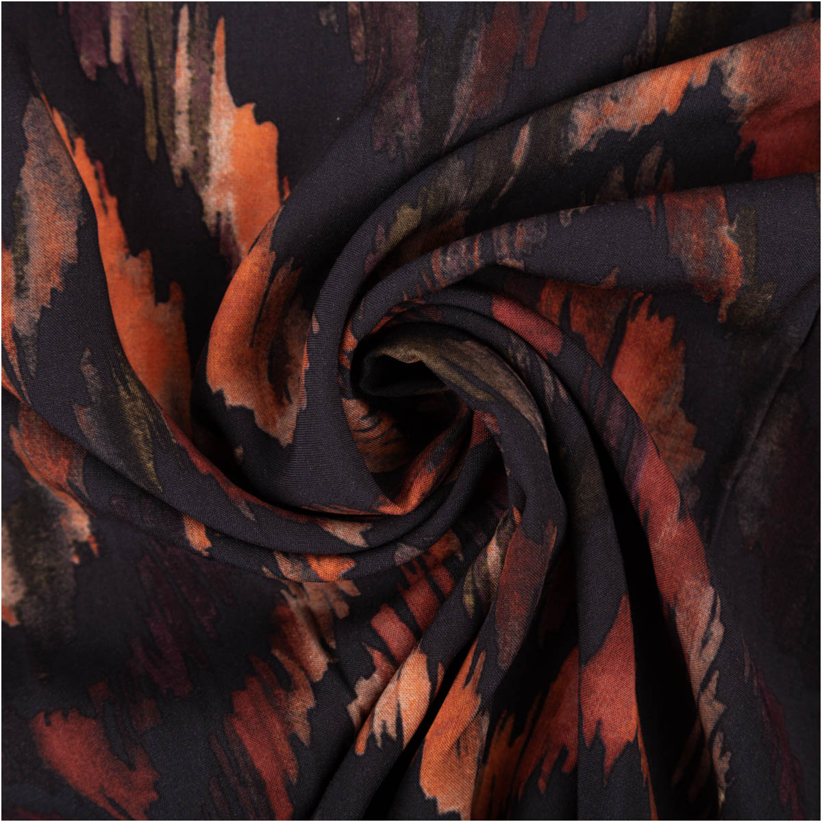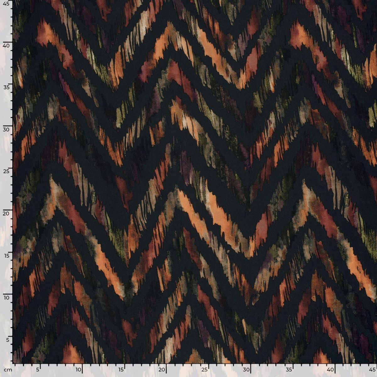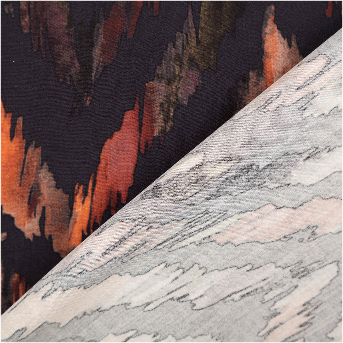Leichte, glatte Viskose-Popeline mit abstraktem Zickzack-Dessin in warmen Naturtönen auf Dunkelgrau. Mit 145 cm Breite und ca. 110 g/m² ist er perfekt für luftige Sommer-Looks – kühl auf der Haut, weich fallend und angenehm zu tragen.