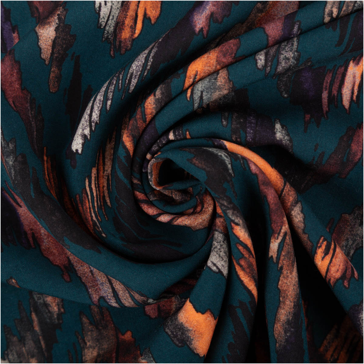Viskose Stoff Popeline abstrakt dunkelgrün 145cm Breite