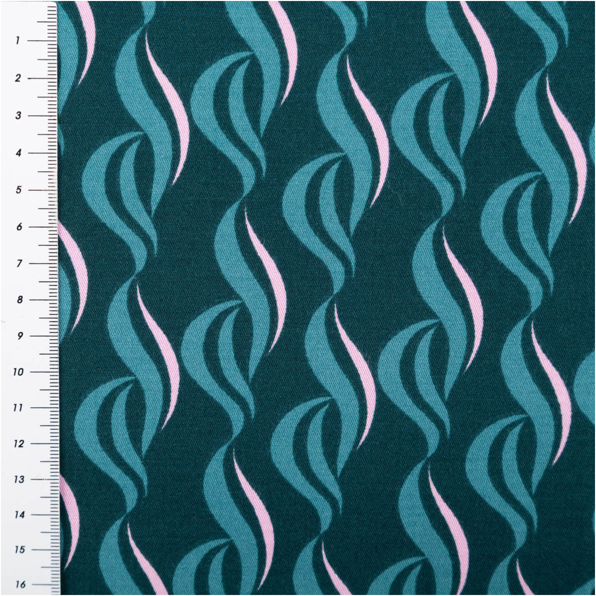 Retro-Wellen-Dessin in petrol, mint & rosé – modern und vielseitig