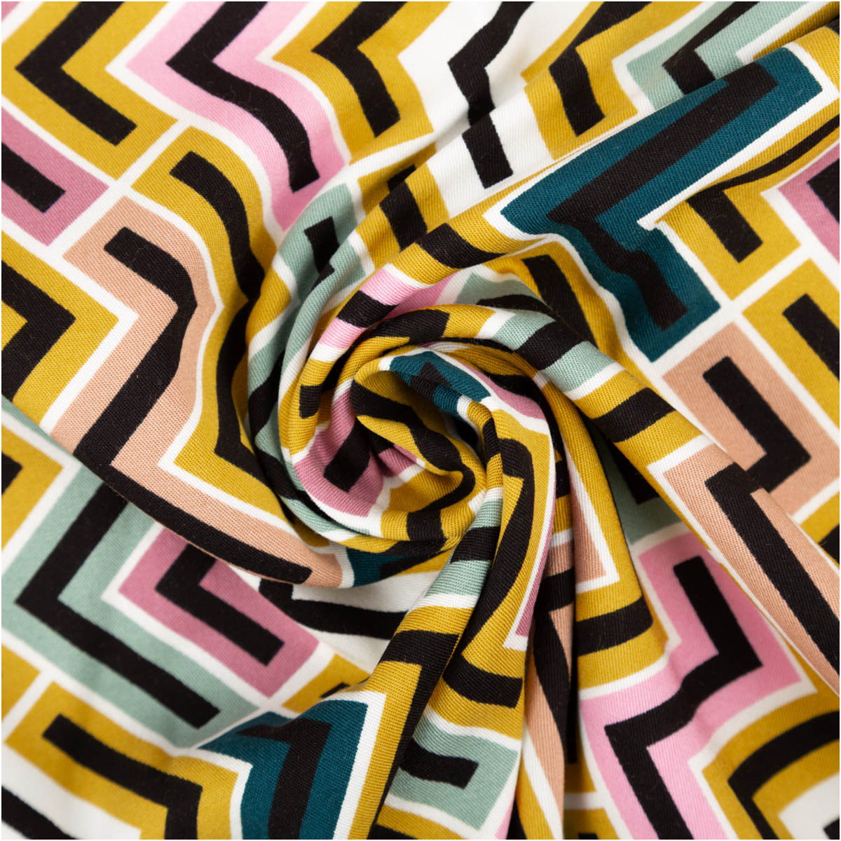 Du suchst einen fließenden Stoff mit Retro-Vibes? „Rosella“ verbindet seidig weichen Fall mit dezenter Elastizität. Das ZickZack-Dessin in senfgelb, rosa und anderen Farben machen jedes Nähprojekt zum Hingucker – von der luftigen Bluse bis zum sommerlichen Kleid.
