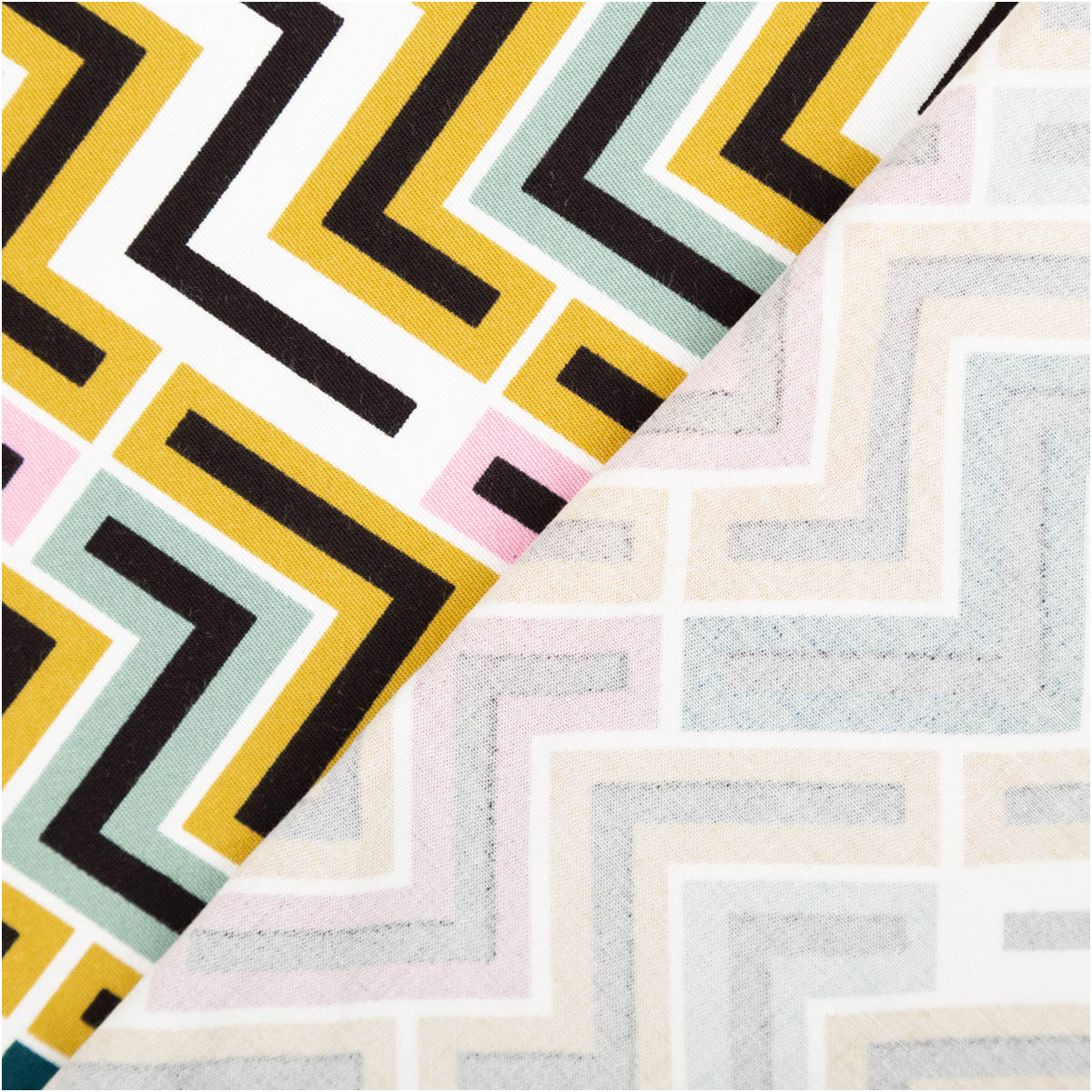 Dessin: retro-inspiriertes ZickZack-Dessin in senfgelb und anderen Farben