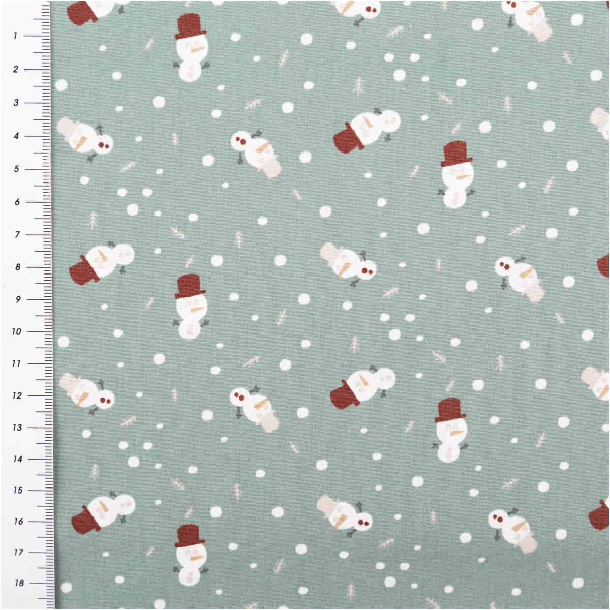 Weicher Popeline-Baumwollstoff mit Schneemann-Motiv in Mint