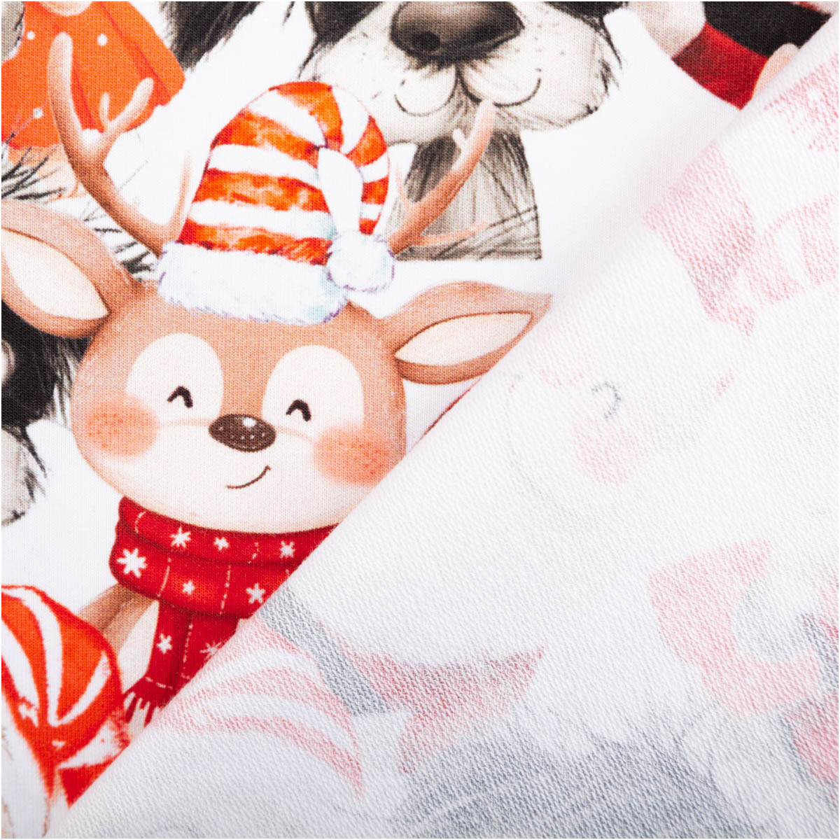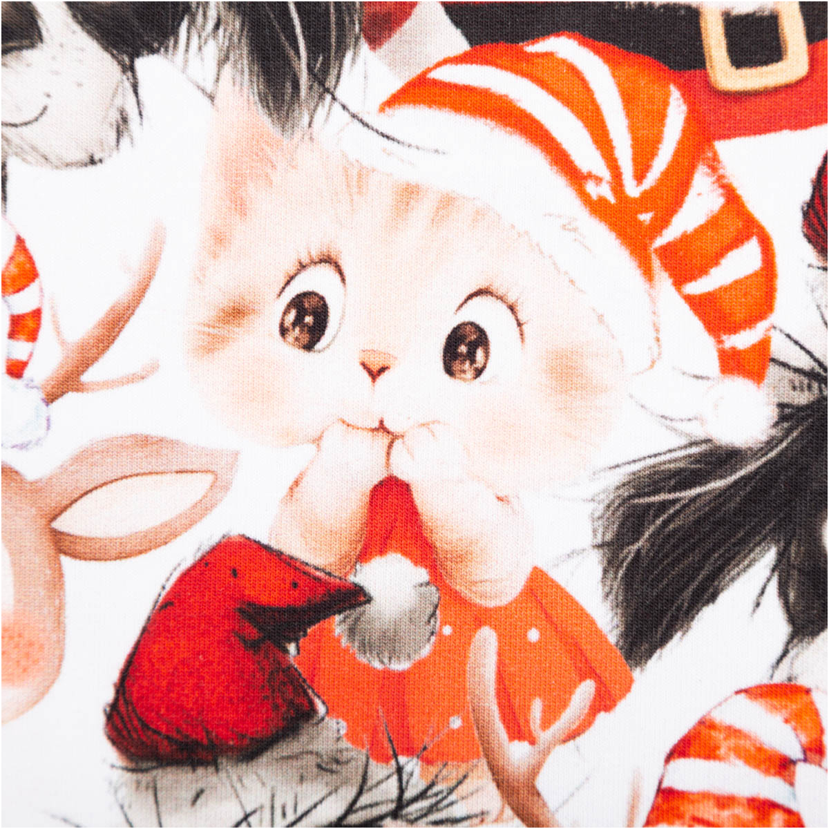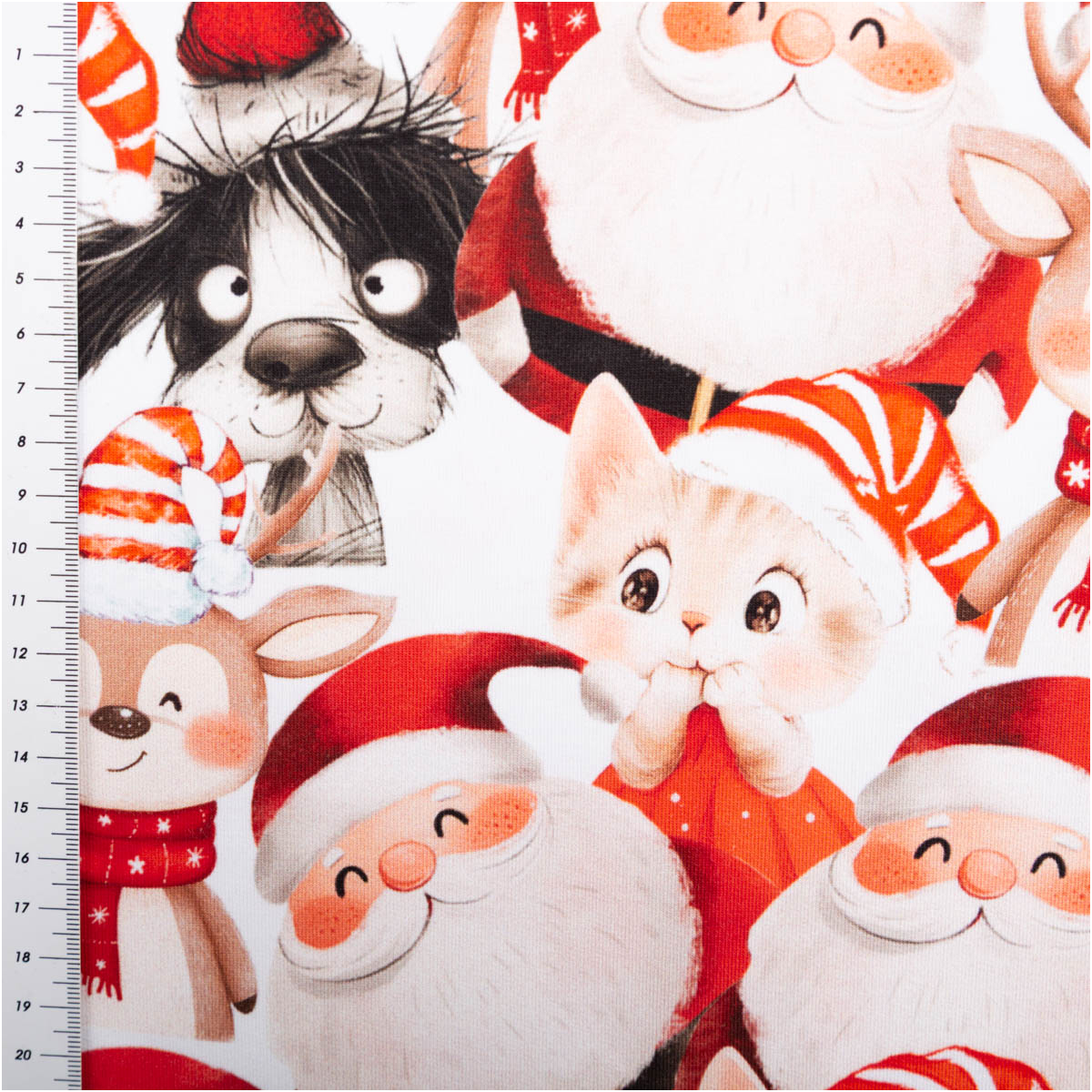 Dieser French Terry Stoff mit originellem Weihnachtsdessin bringt Weihnachtsstimmung pur in deine Nähprojekte! Der Sommersweat zeigt Weihnachtsmänner, Katzen, Hunden und Rehe – ein verspieltes Motiv, das perfekt zur festlichen Jahreszeit passt.
