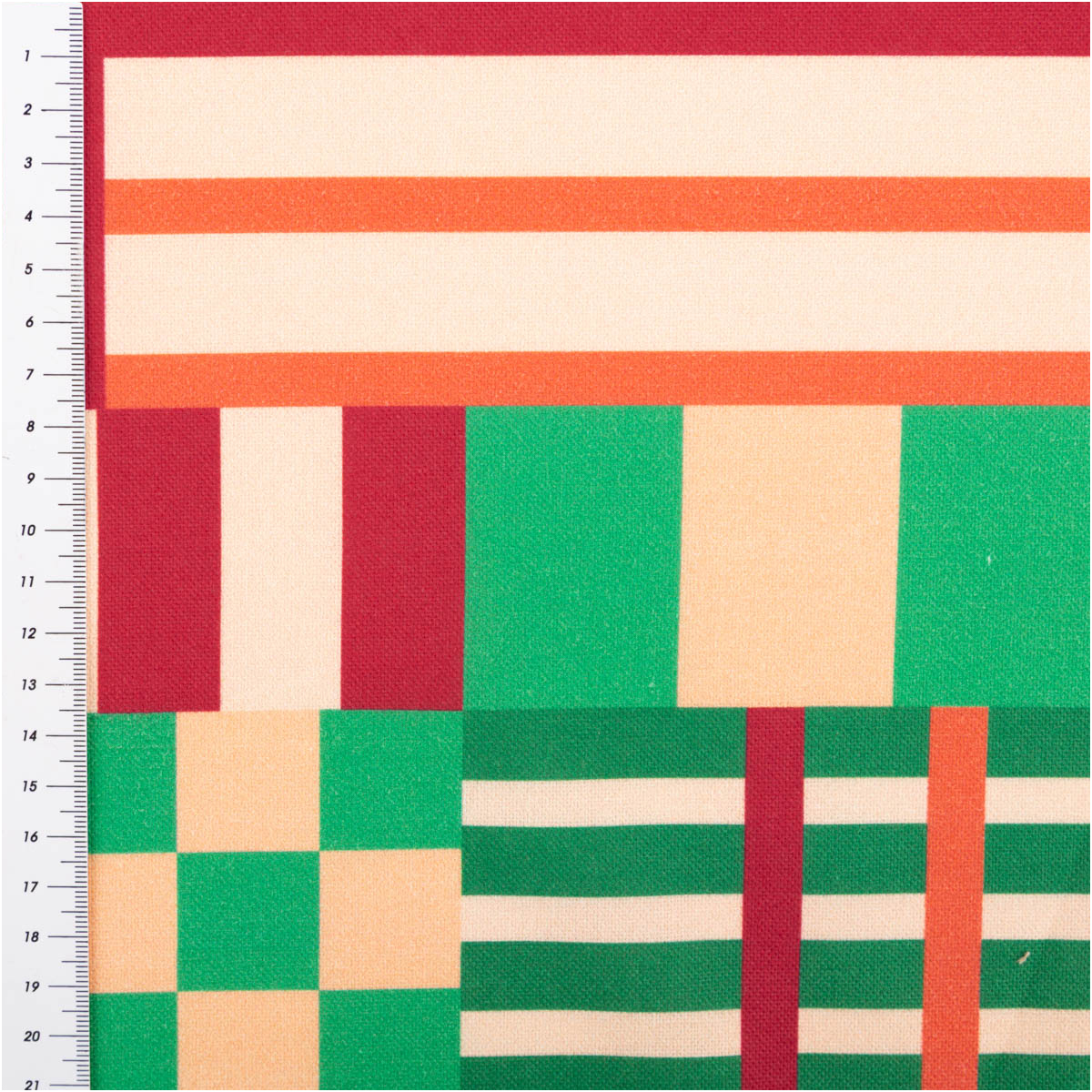 Baumwollstoff Dekostoff Halbpanama Digitaldruck Graphic Block Line rot grün 1,40m Breite