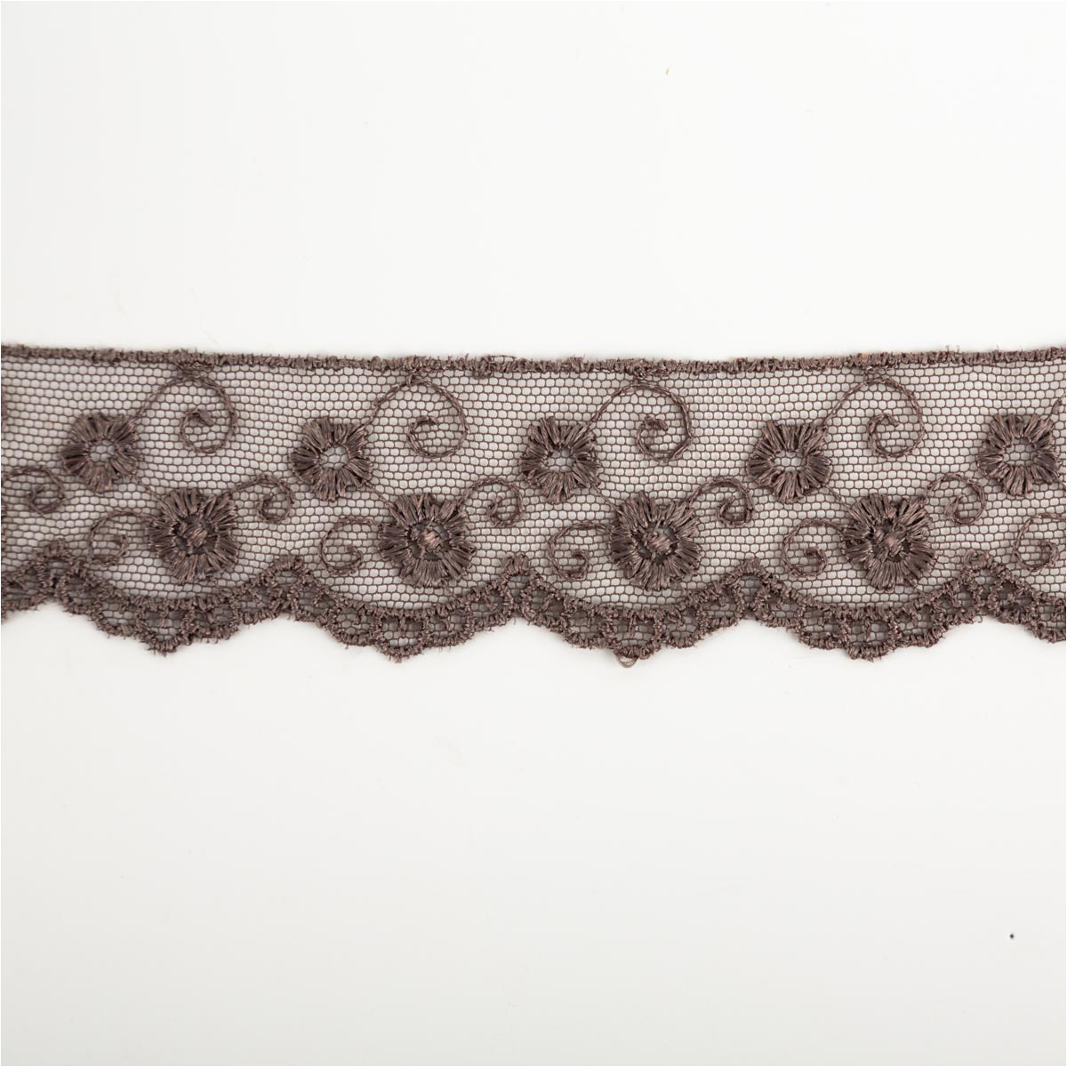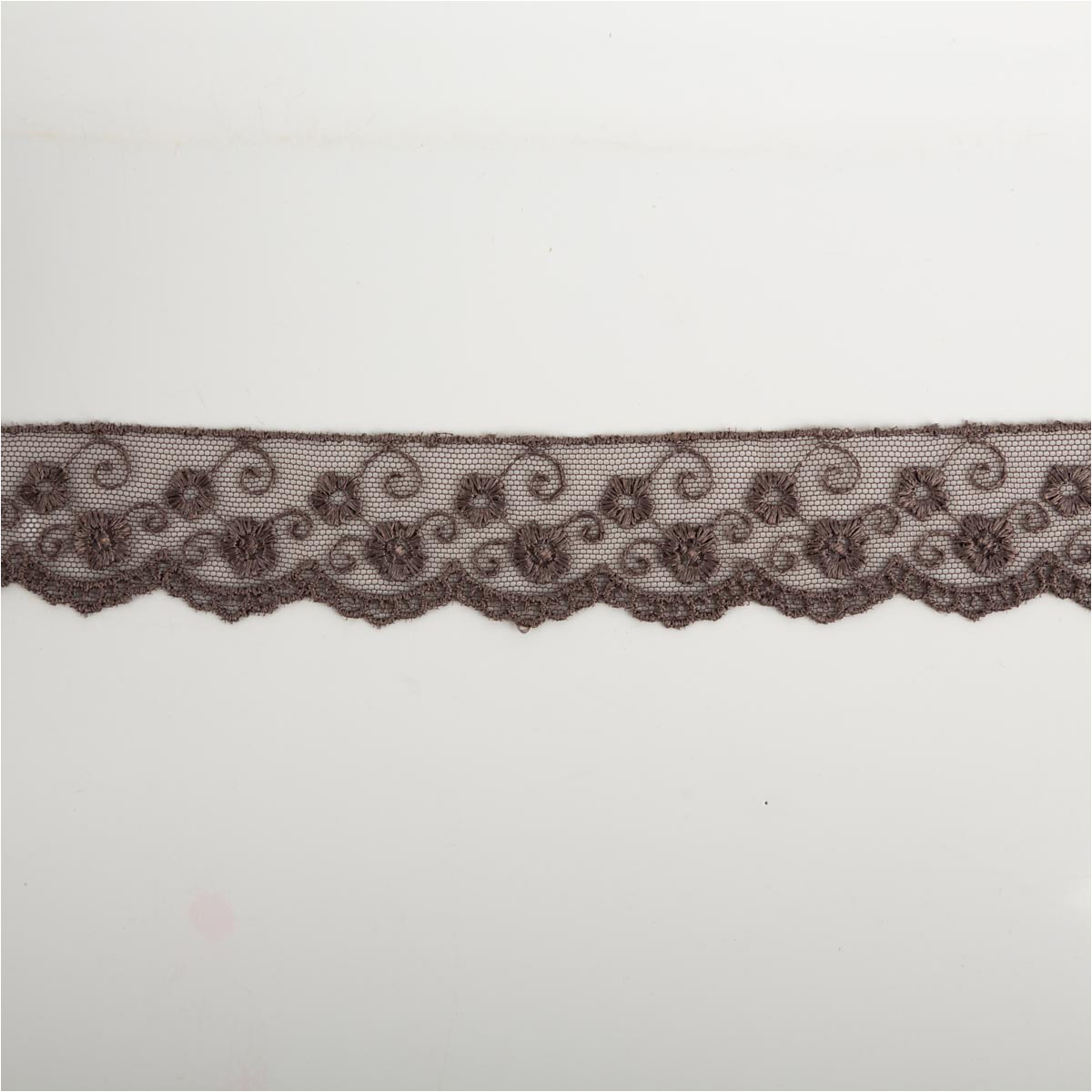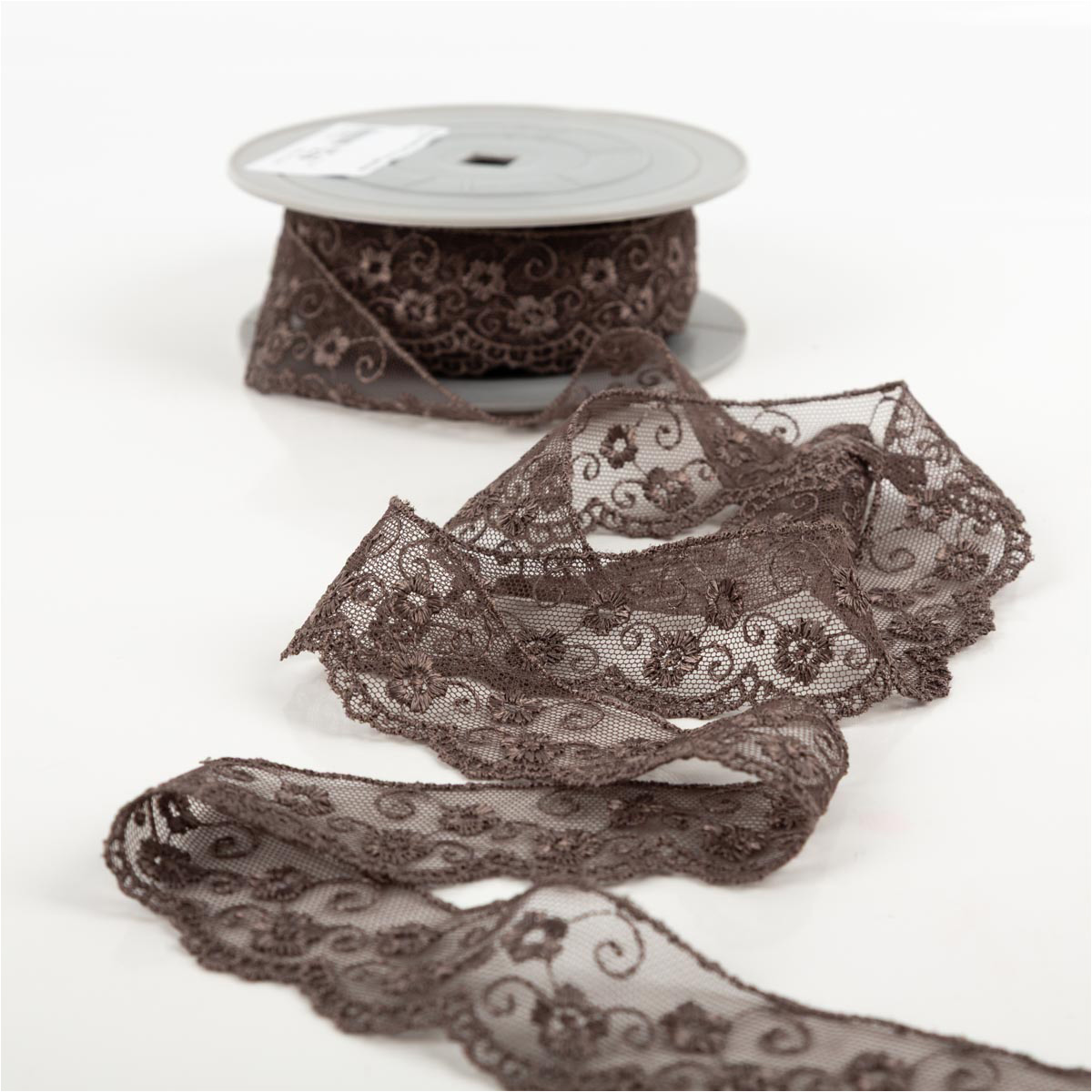 Band Stickerei auf Tüll taupe Breite: 3cm