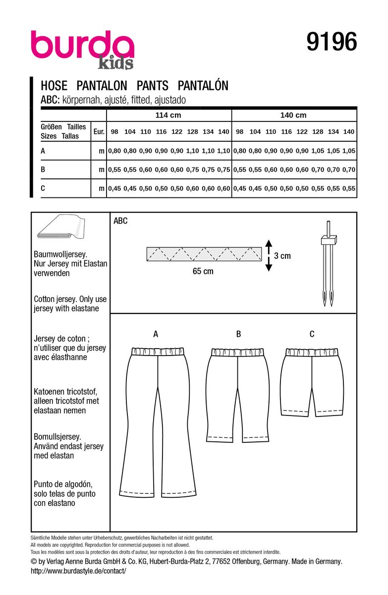 Burda Schnittmuster 9196 Kinder Hose