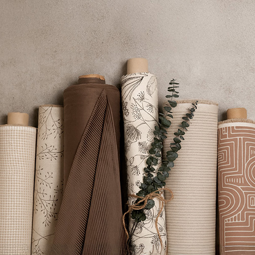 Der Stoff mit kleinen Blätterzweigen lässt sich vielseitig einsetzen und passt hervorragend zu vielen natürlichen Einrichtungsstilen wie Skandinavisch oder Landhaus.
