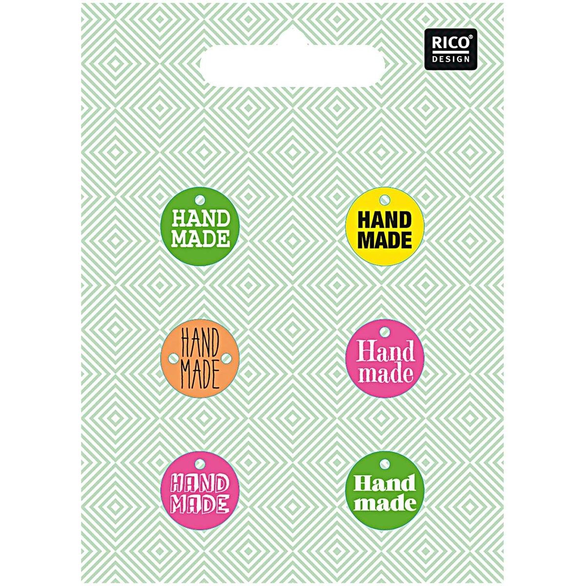 Rico Design Knöpfe Label Handmade Neon 1,5 cm – 6 Stück