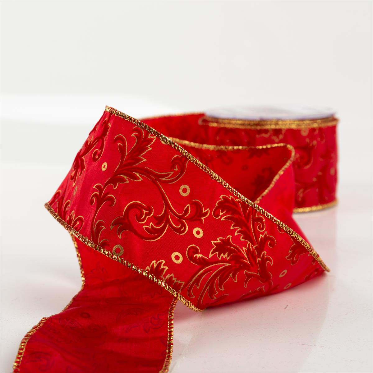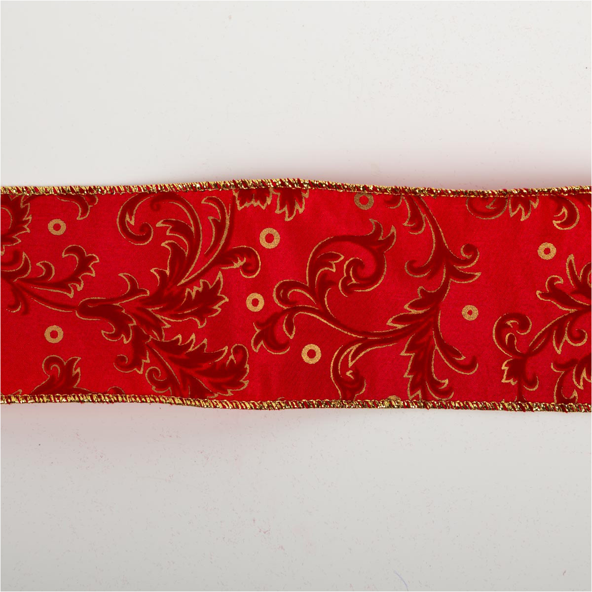 Dekoband Arabesque mit Velour und Metalldraht rot gold 6,4cm Breite