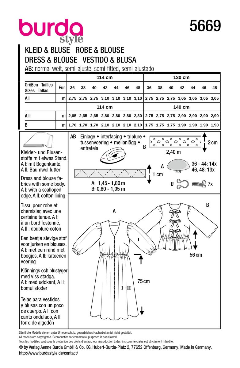 Burda Schnittmuster 5669 Damen Kleid und Bluse