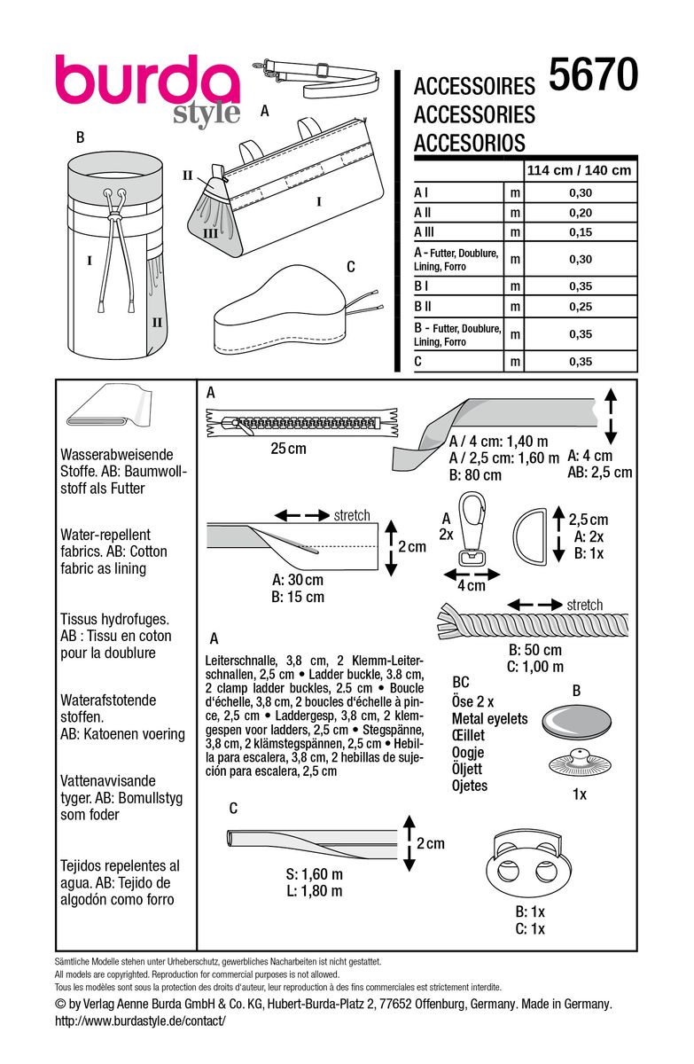 Burda Schnittmuster 5670 Fahrrad Accessoires