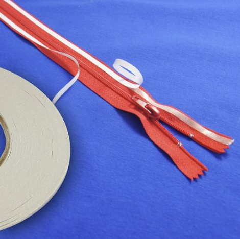 bitte nicht direkt mit der Nadel durch das Band nähen, damit die Nadel nicht verklebt