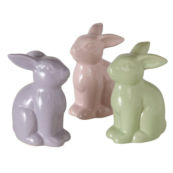 Mit dieser Hasenfigur bringst du frische Frühlingsstimmung in dein Zuhause. Die Dekofigur aus Porzellan ist 11 cm hoch und in drei sanften Pastelltönen erhältlich: Rosa, Lila oder Grün. So kannst du genau die Farbe wählen, die am besten zu deiner Osterdeko, deiner Tischdekoration oder deinem Wohnstil passt.