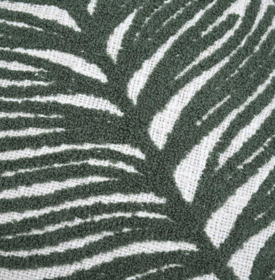 Dieses hochwertige Dekokissen mit getuftetem Monstera-Blatt bringt stilvolle Natürlichkeit in dein Zuhause. Das exklusive Dessin aus Frankreich verbindet ein modernes Blattmotiv mit einer feinen Struktur und dezenten silberfarbenen Glitzereffekten. So entsteht ein eleganter Blickfang für Sofa, Sessel oder Bett.
