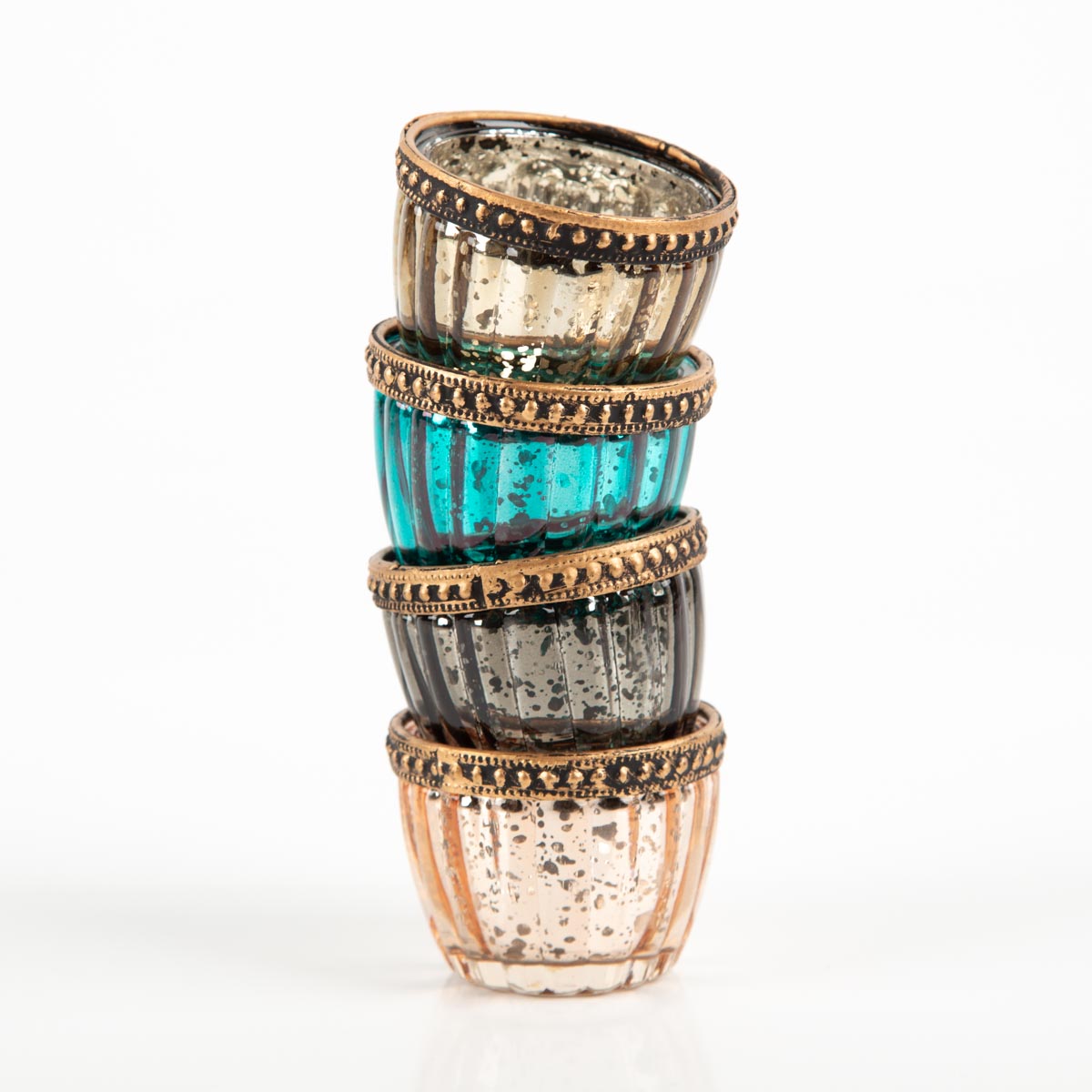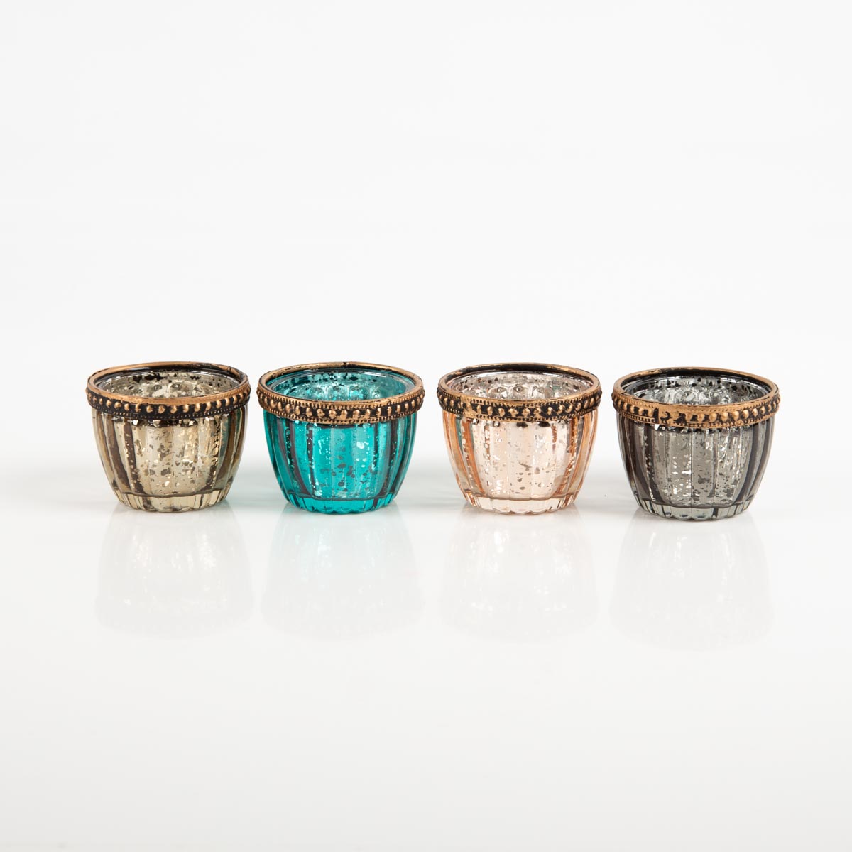 Teelicht mit Metallrand gerillt in vier Farben 4,5x6 cm von Werner Voß