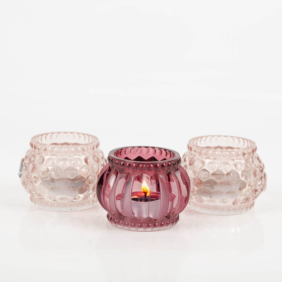 Teelichthalter aus Glas in zarten Rosatönen – dekorativ und zeitlos.