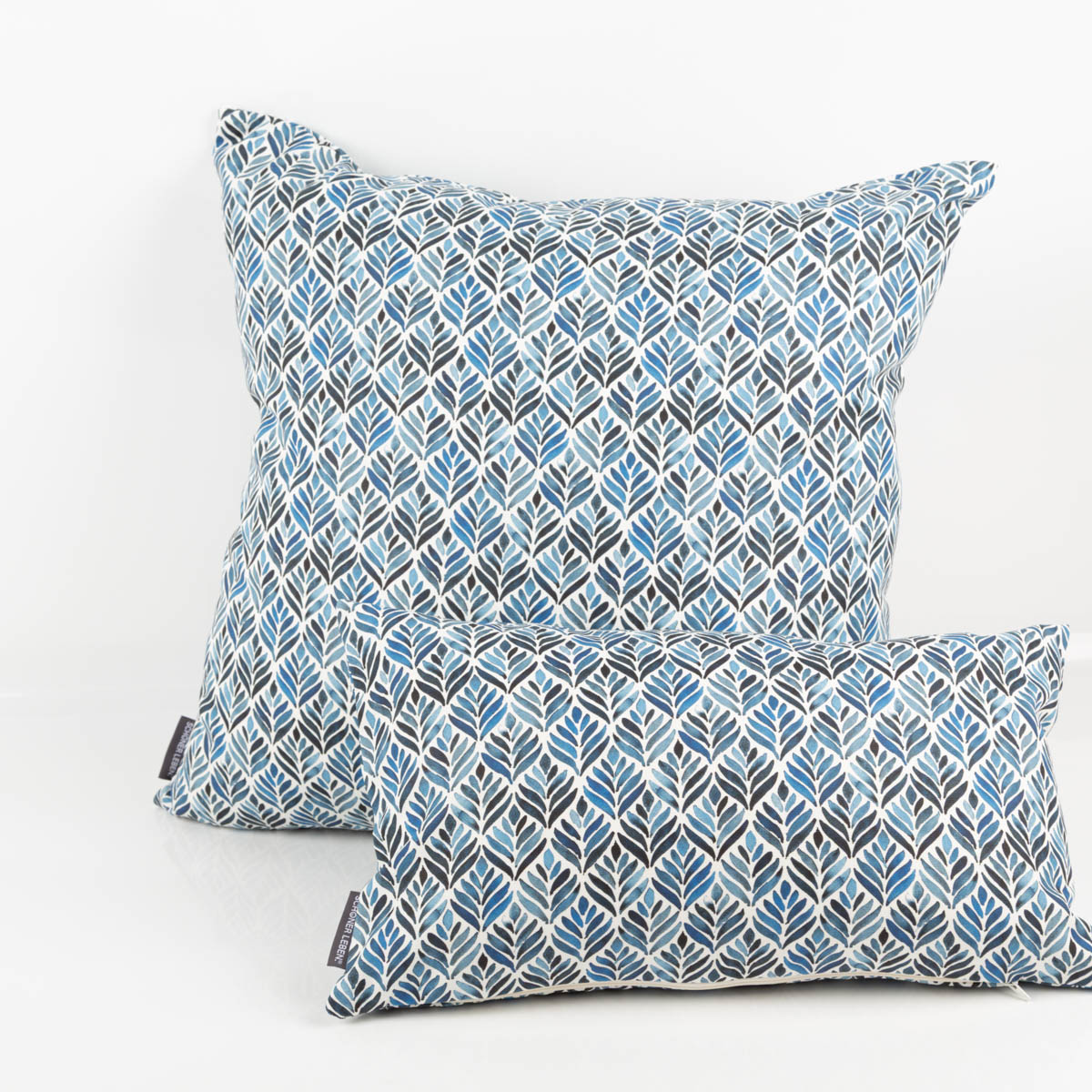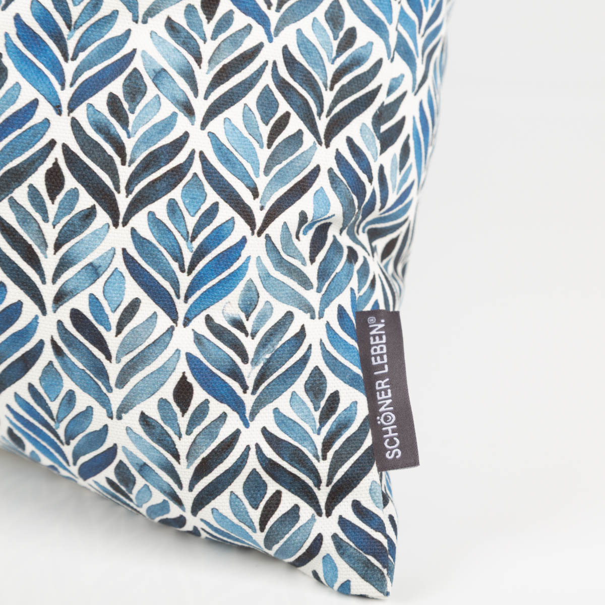 Moderne Kissenhülle mit Aquarell Ornamenten in Blau aus Baumwolle in verschiedenen Größen oder nach Maß von SCHÖNER LEBEN.