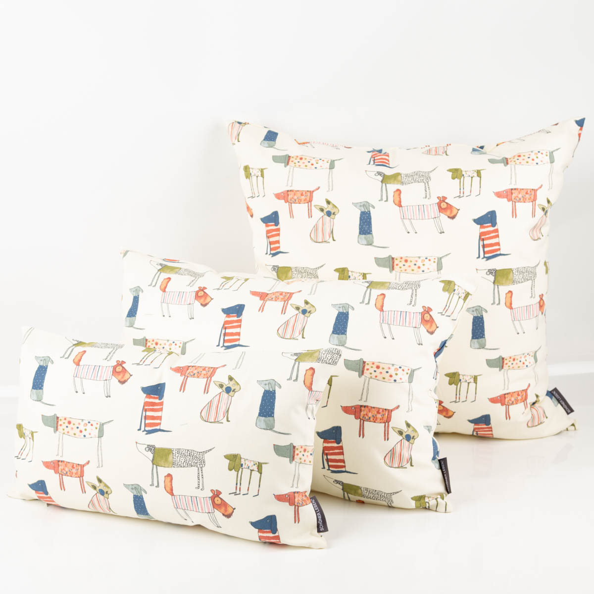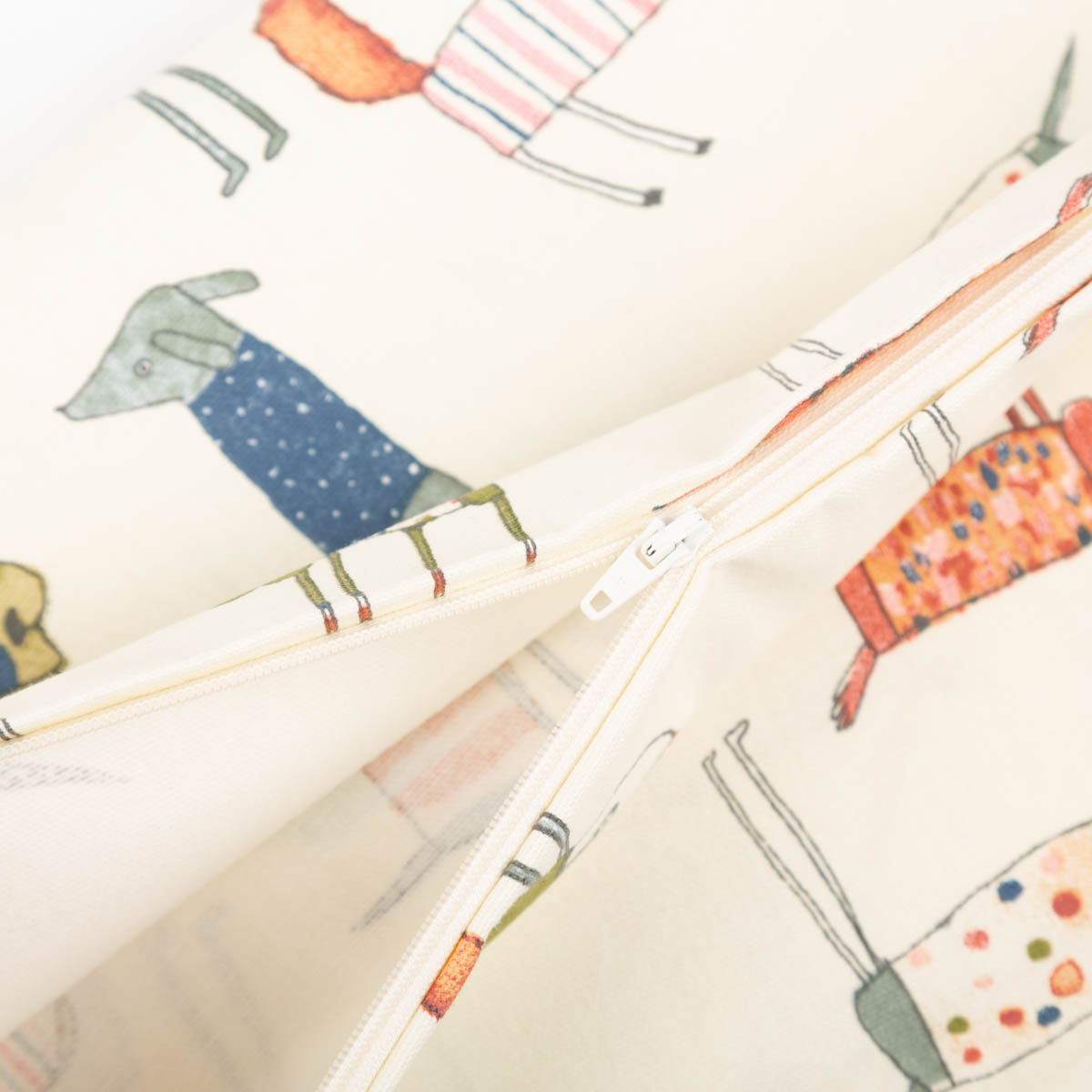 Kissenhülle aus Baumwolle mit Hunden beige bunt in versch. Größen von SCHÖNER LEBEN.