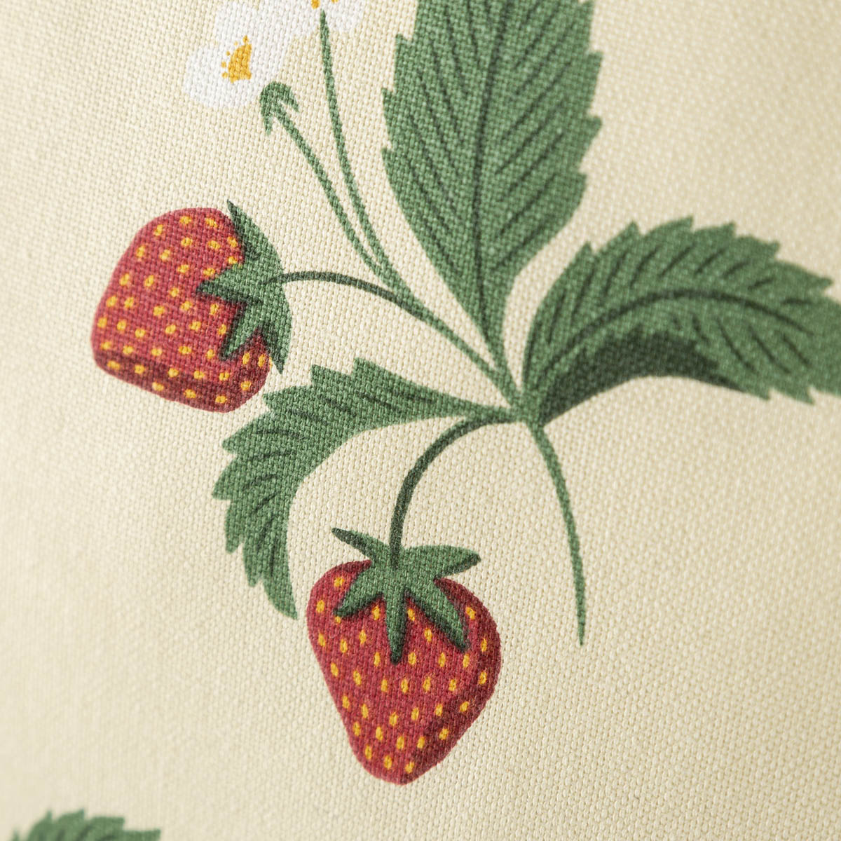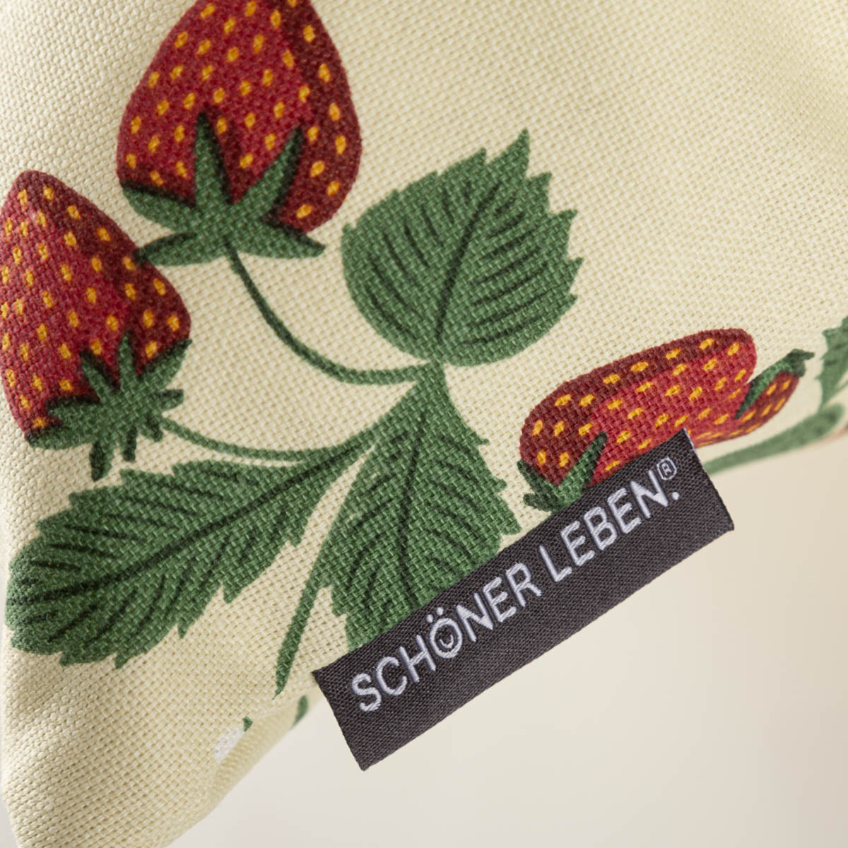 Die Kissenhülle Strawberry Happy Fruit aus unserer SCHÖNER LEBEN. Kollektion ist überall ein wunderschöner Hingucker, der sommerlich-frische Akzente setzt! Die Kissenhülle in einem zarten Vanille-Ton mit Erdbeer-Print in Rot und Grün hat einen natürlichen Charakter und ist aus robustem Halbpanama-Stoff mit 80% Baumwollanteil genäht.