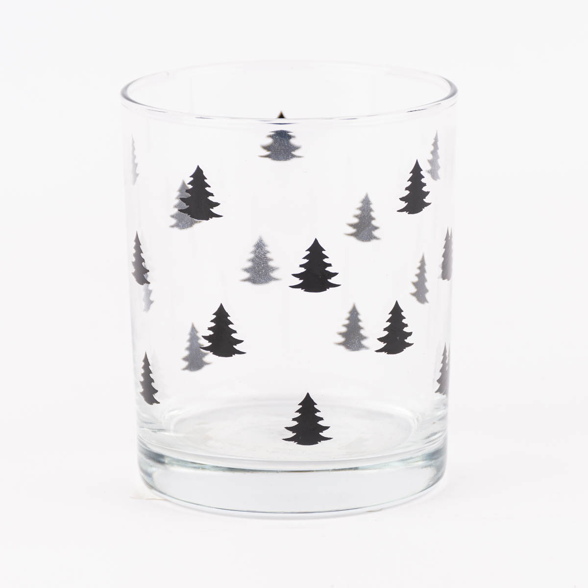 Clayre & Eef Trinkglas Tannenbäume transparent schwarz 9x7,5cm 230ml