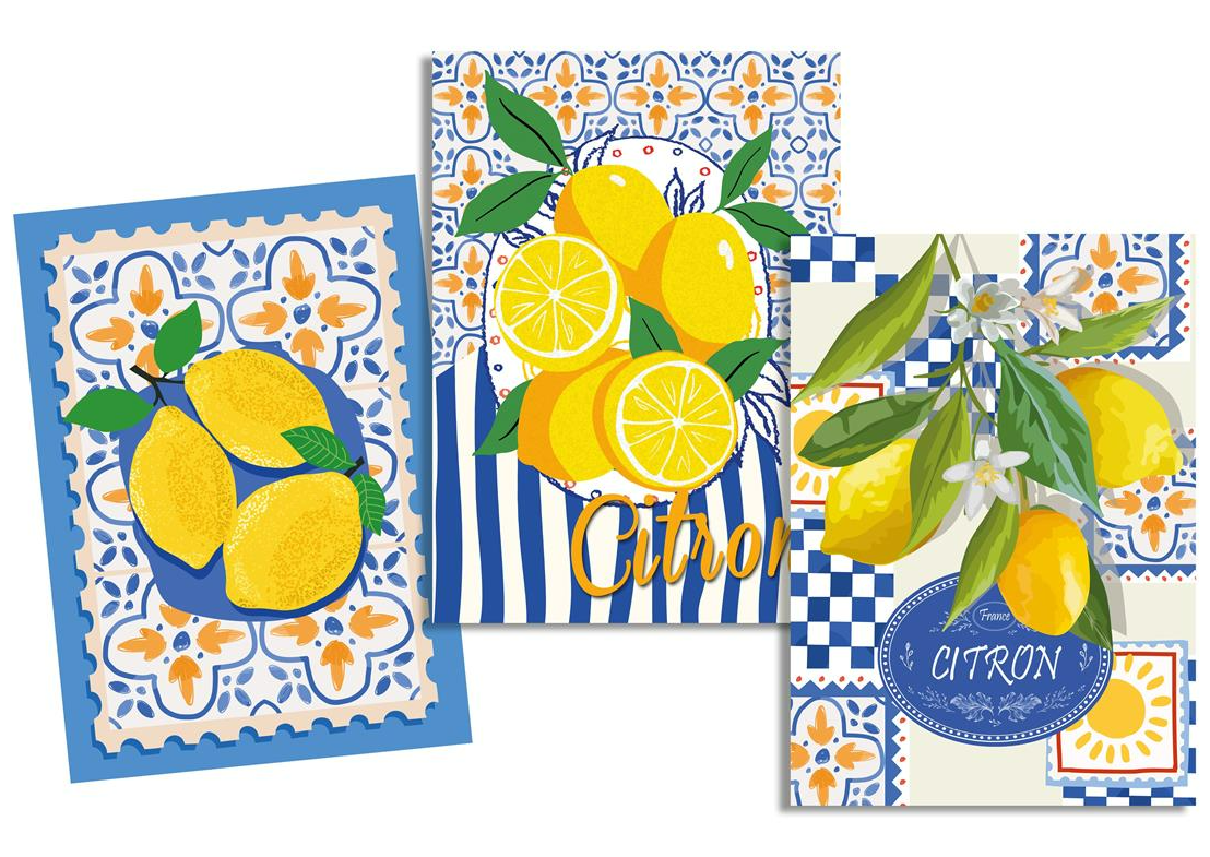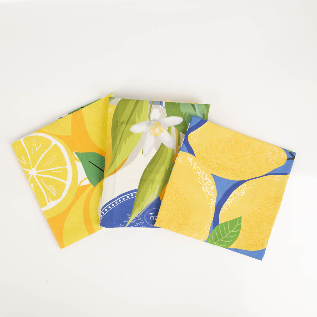 Das Set umfasst drei unterschiedliche, aber perfekt aufeinander abgestimmte Zitronen-Designs im Format 50 × 70 cm. So hast du immer ein frisches Tuch zur Hand – funktional und dekorativ zugleich.