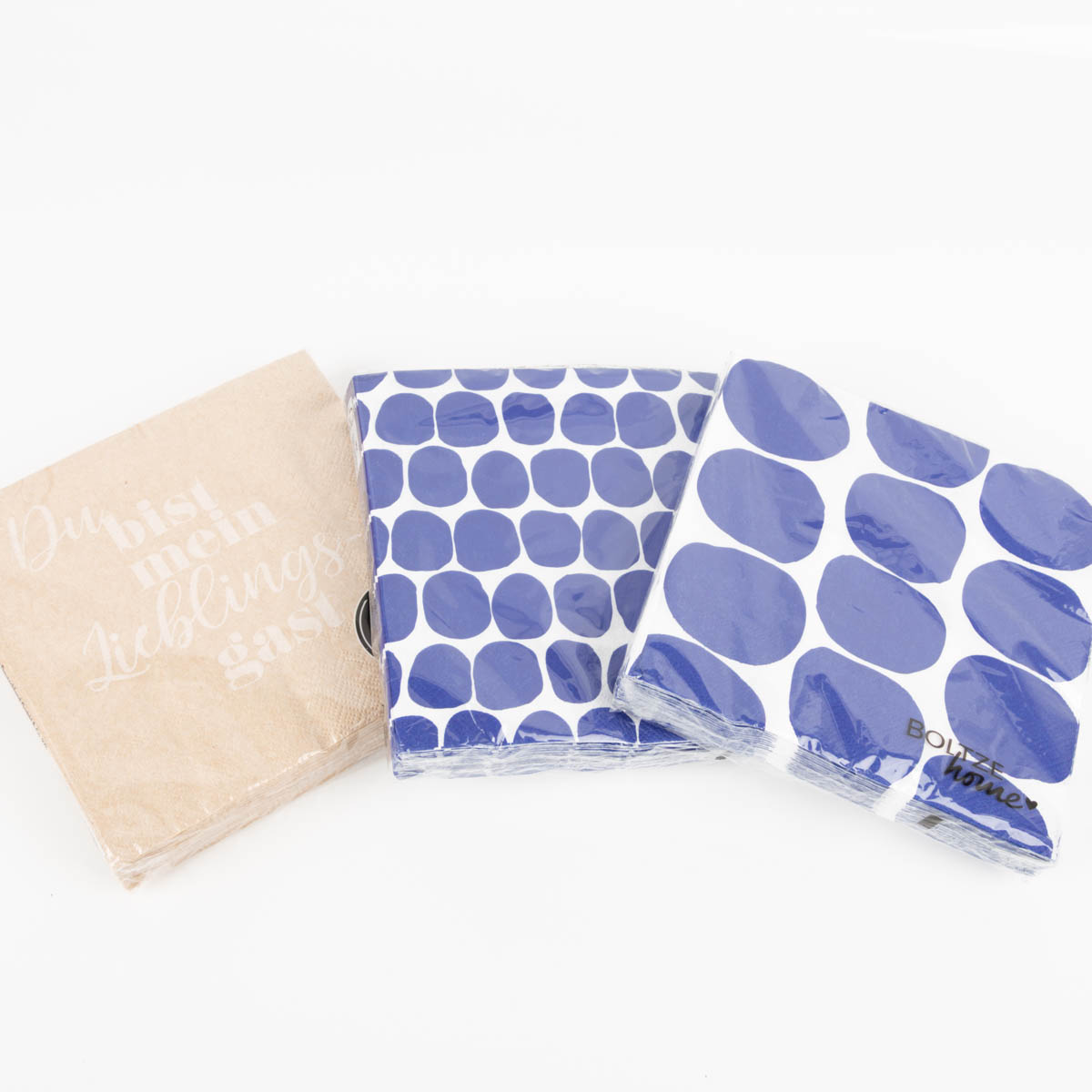 Frische Tischdeko im Handumdrehen: Die blauen „Kiesel“-Servietten setzen moderne Akzente zu Drinks, Kuchen und Fingerfood. Weiches, 3-lagiges FSC®-Papier, handlich im Cocktailformat.