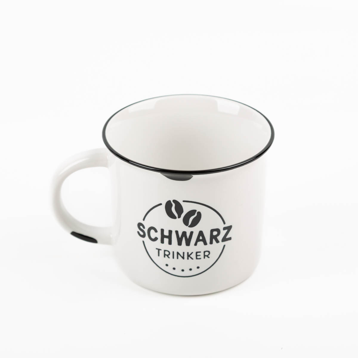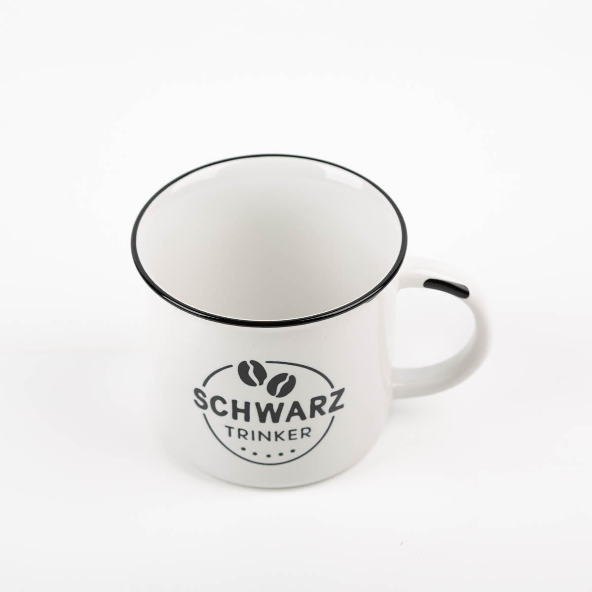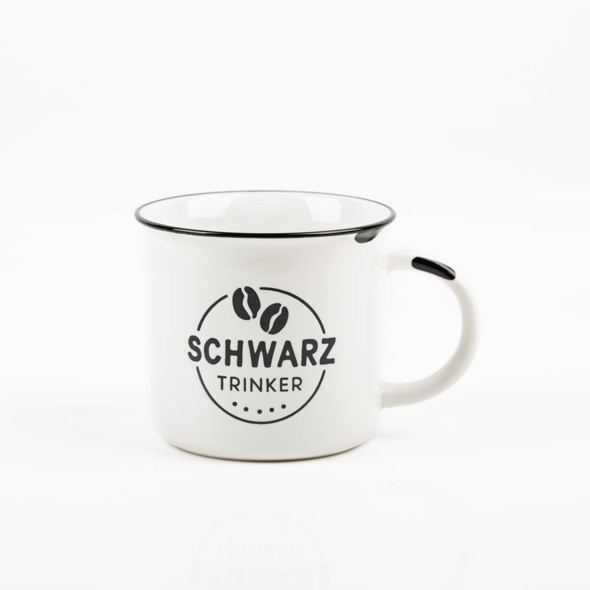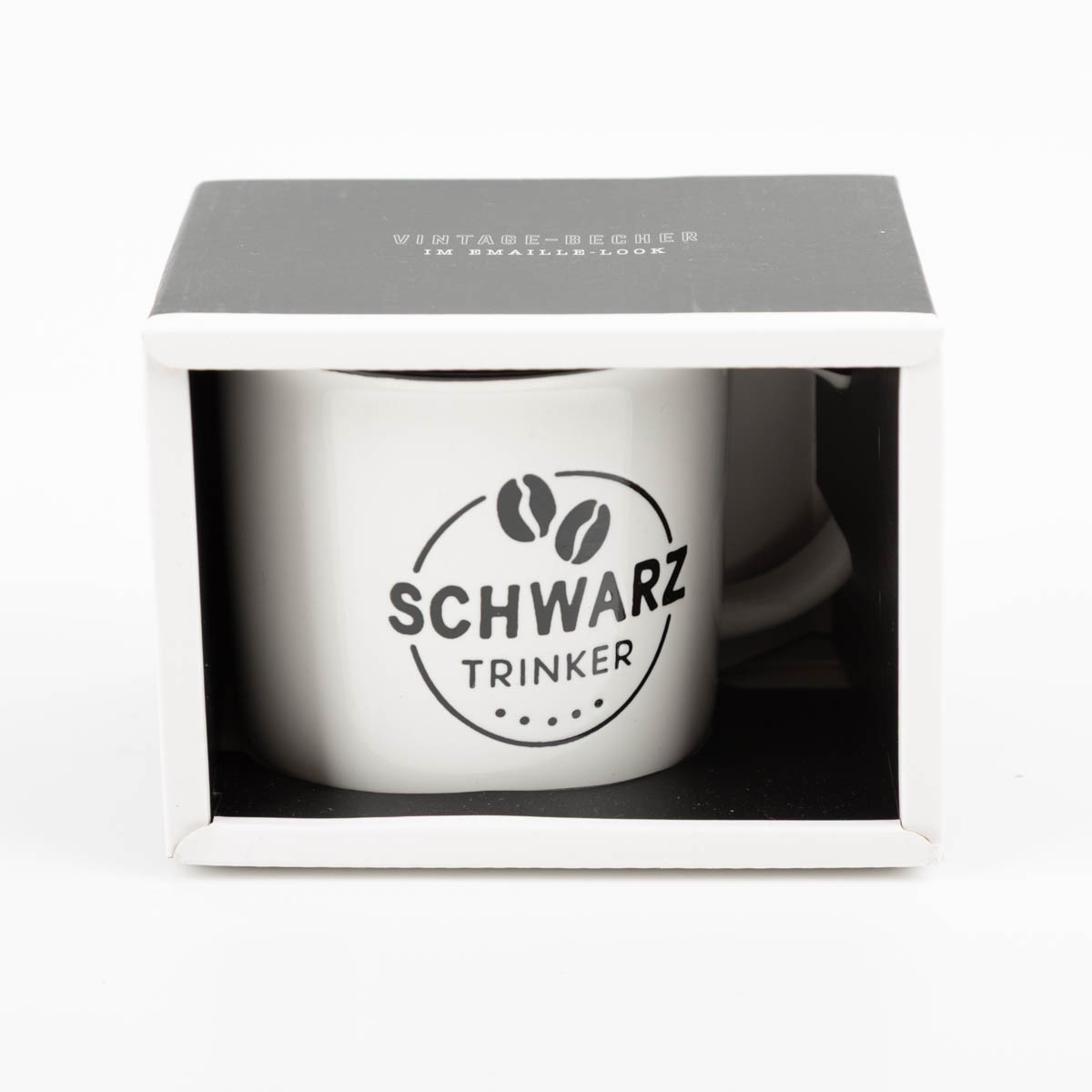 Tasse „Schwarztrinker“ – Vintage-Keramik im Emaille-Look (400 ml) von Grafik Werkstatt