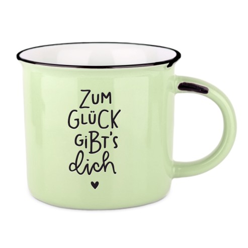 Tasse Vintage Zum Glück gibt´s dich Keramik im Emaille-Look 400ml von Grafik Werkstatt