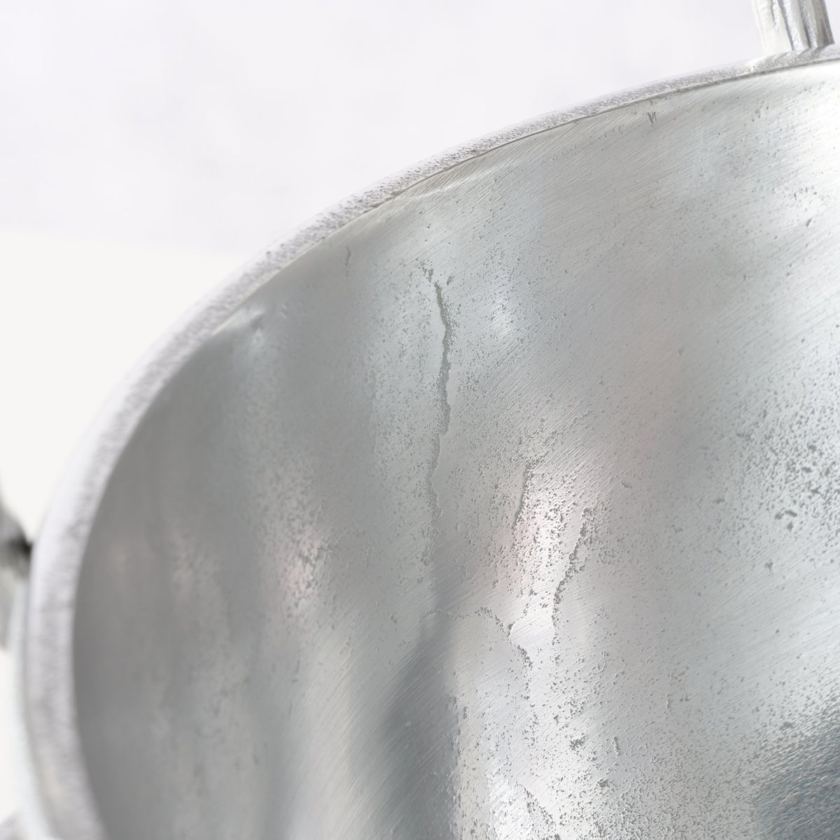 Der Flaschenkühler besteht aus Aluminium und ist vernickelt. Dadurch erhält er seine glänzende silberfarbene Oberfläche und eine hochwertige, stabile Wirkung. Das Material ist robust verarbeitet und unterstützt die langlebige Nutzung im Innenbereich. Gleichzeitig sorgt die Metalloptik für einen ausdrucksstarken Auftritt.