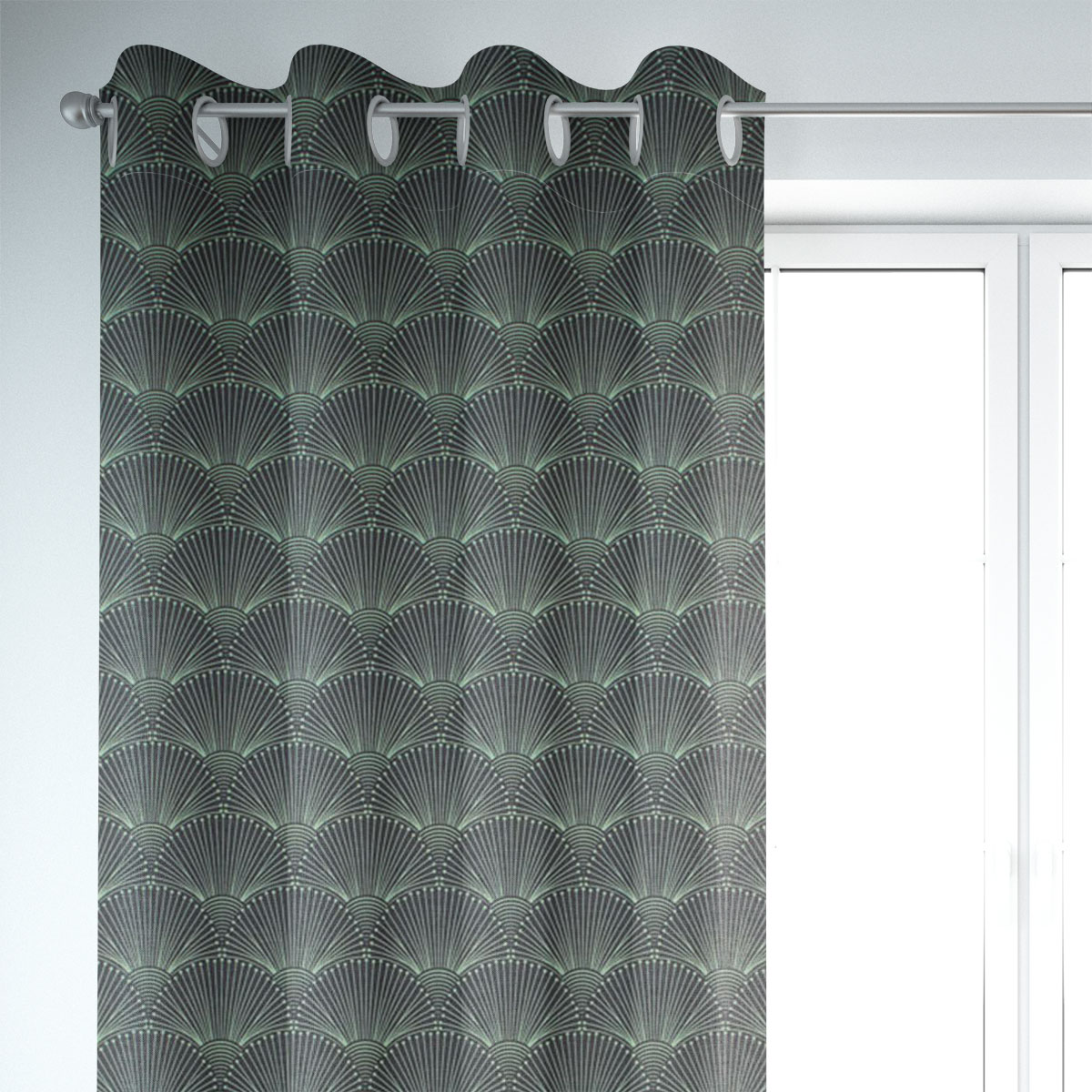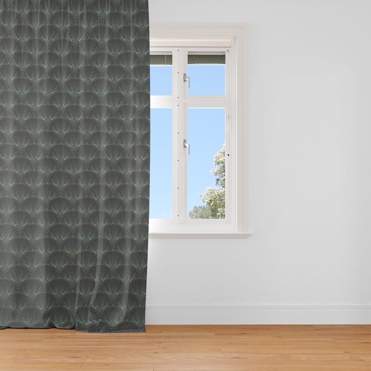 NATÜRLICH UND MODERN: Die wunderschönen, mintfarbenen Bögen und Fächer ergeben ein bezauberndes Art Deco Muster, das den Vorhang zu einem echten Schmuckstück in deiner Einrichtung macht.