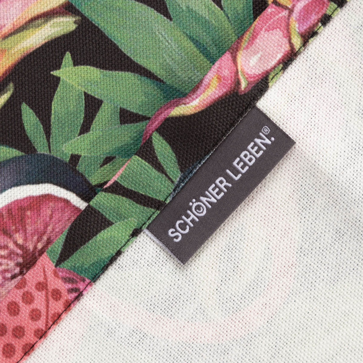 Mit diesem hochwertigen Tischläufer aus der SCHÖNER LEBEN. Kollektion bringst du exotisches Flair auf deinen Tisch. Das exklusive Digitalprint-Design mit Jaguar und Früchten in leuchtenden Farben auf schwarzem Hintergrund ist ein Hingucker für dein Zuhause.