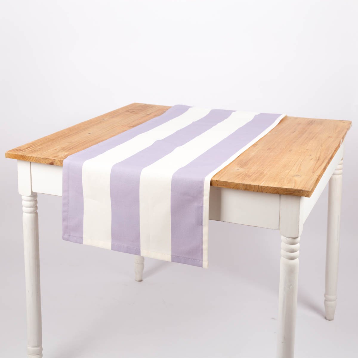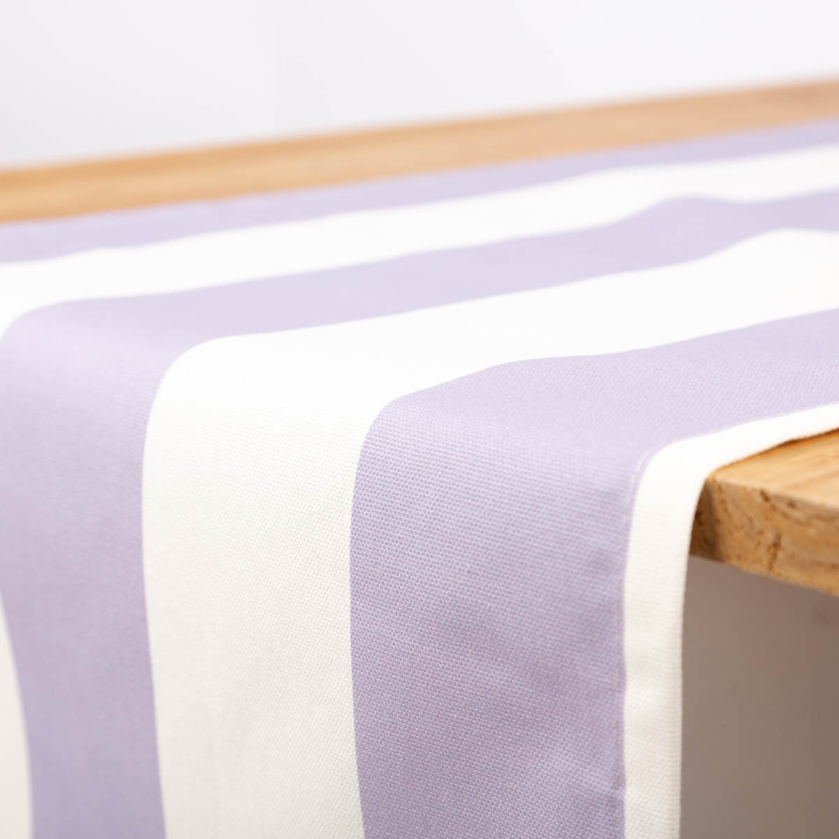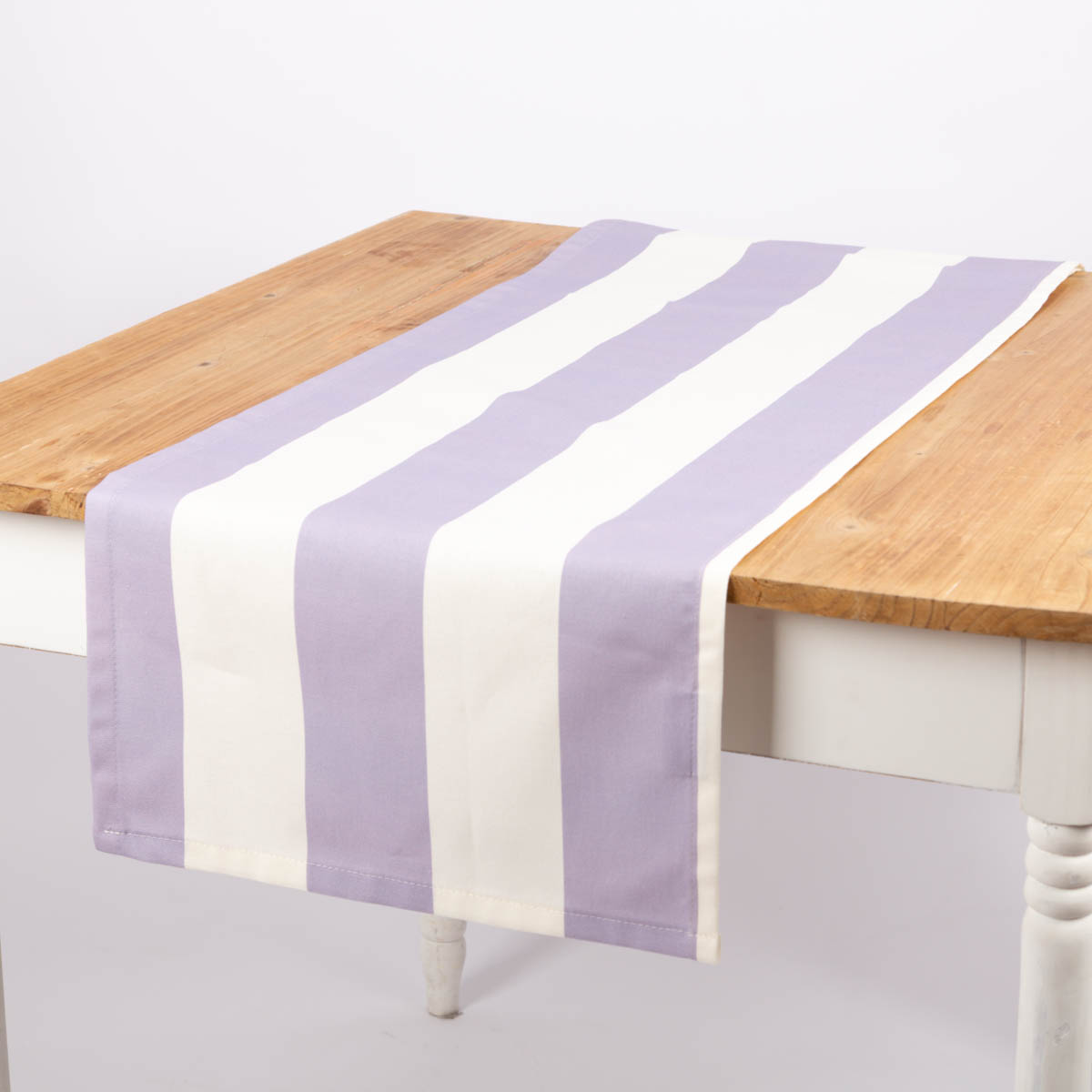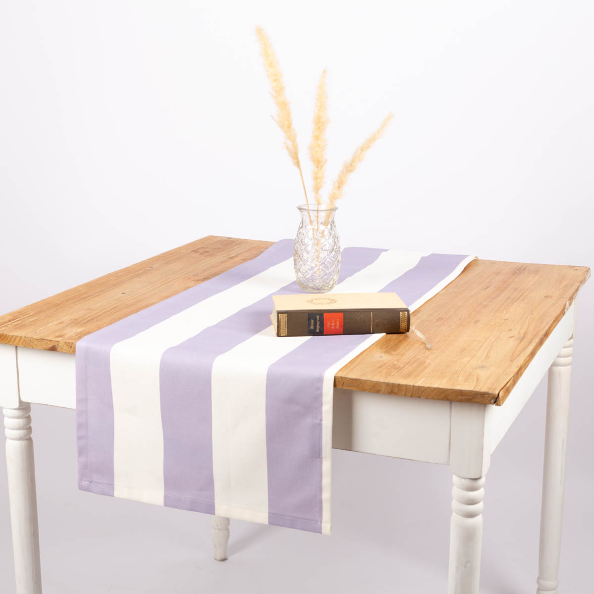 Tischläufer aus Baumwolle mit Streifen in Flieder und Ecru (40x160cm) – handgefertigt in Deutschland, Teil der SCHÖNER LEBEN. Kollektion