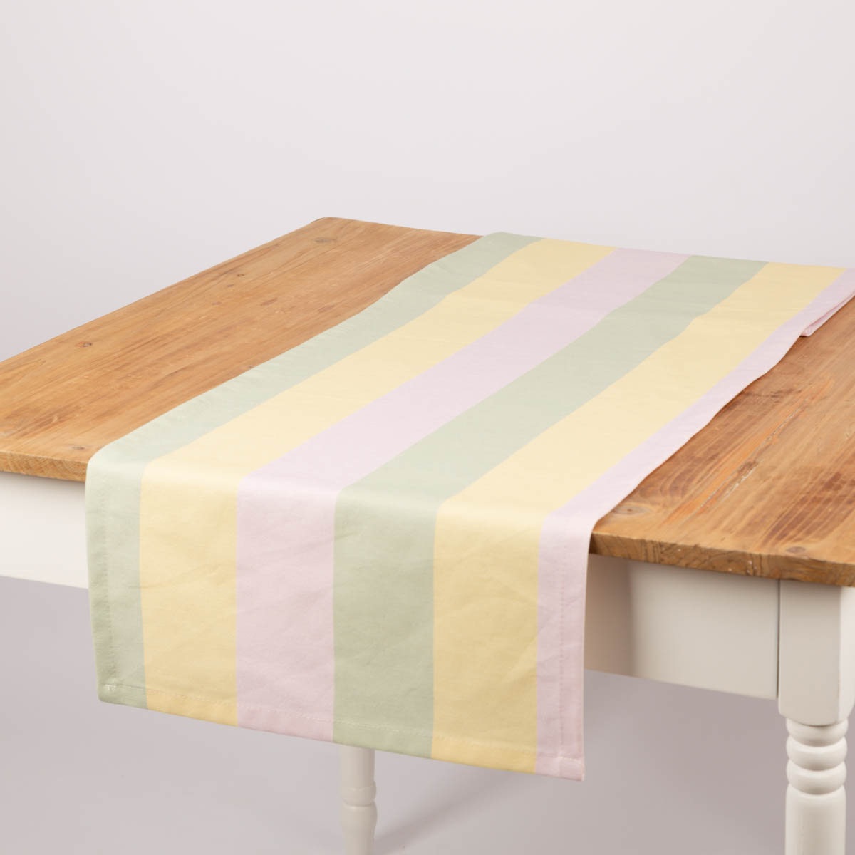 Tischläufer aus Baumwolle mit Streifen in Flieder, Vanille und Pistazie (40x160cm) – handgefertigt in Deutschland, Teil der SCHÖNER LEBEN. Kollektion