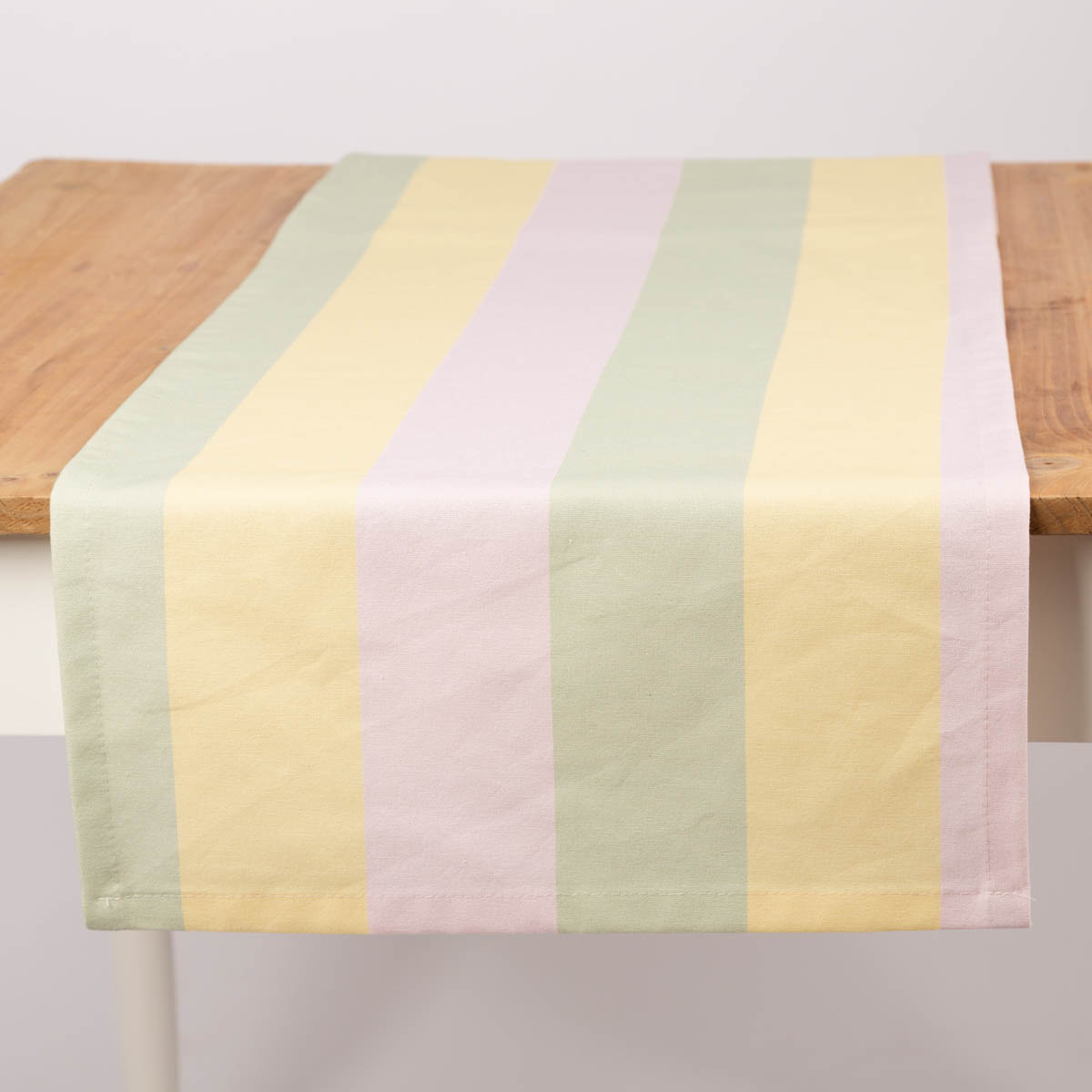 Tischläufer aus Baumwolle mit Streifen flieder vanille pistazie 40x160cm von SCHÖNER LEBEN.
